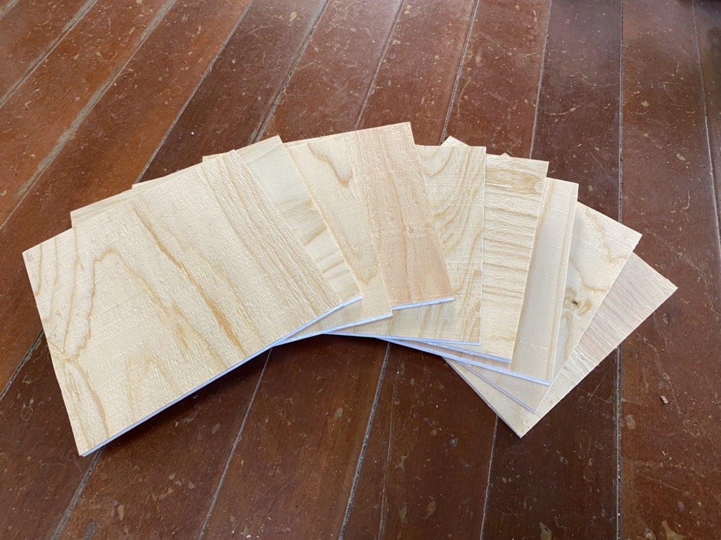 木シートをスチレンボードに貼り付け、ビスなどを用いて天井に貼り付けていきました。