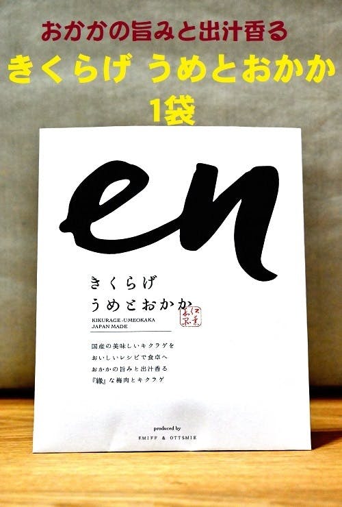 ■en「きくらげ うめとおかか」 おかかの旨みと出汁香る、梅肉とキクラゲ! (原材料:きくらげ、ねりうめ、削り節、醤油、砂糖、調味料、pH調整剤 )