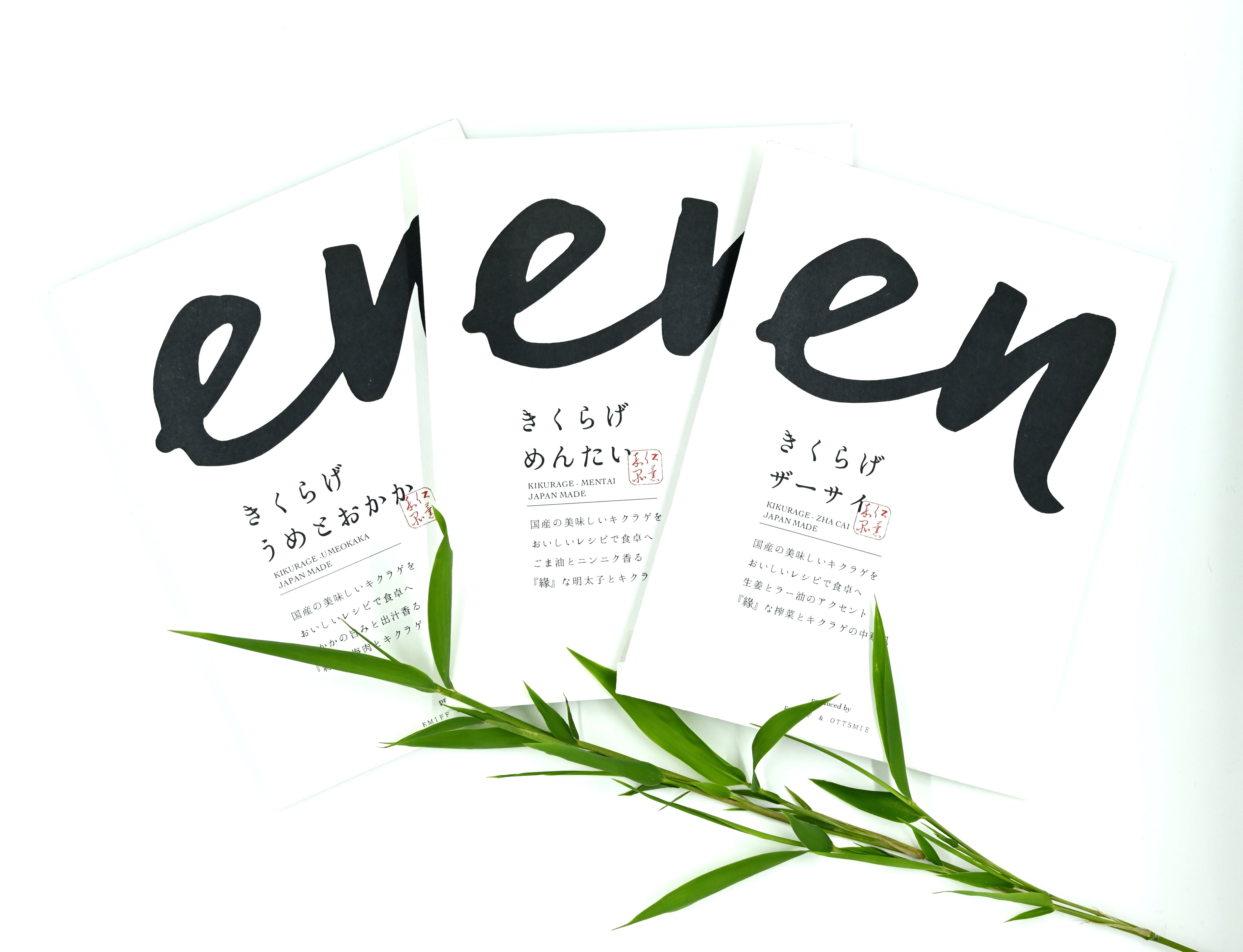 レシピ開発はSNSフォロワー数が数十万人という人気有名料理研究家に依頼、ベーシックな食材との組み合わせだからこそ難しい調整を何度も重ねて、「きくらげ ザーサイ」「きくらげ めんたい」「きくらげ うめとおかか」の3種類を作り上げました。