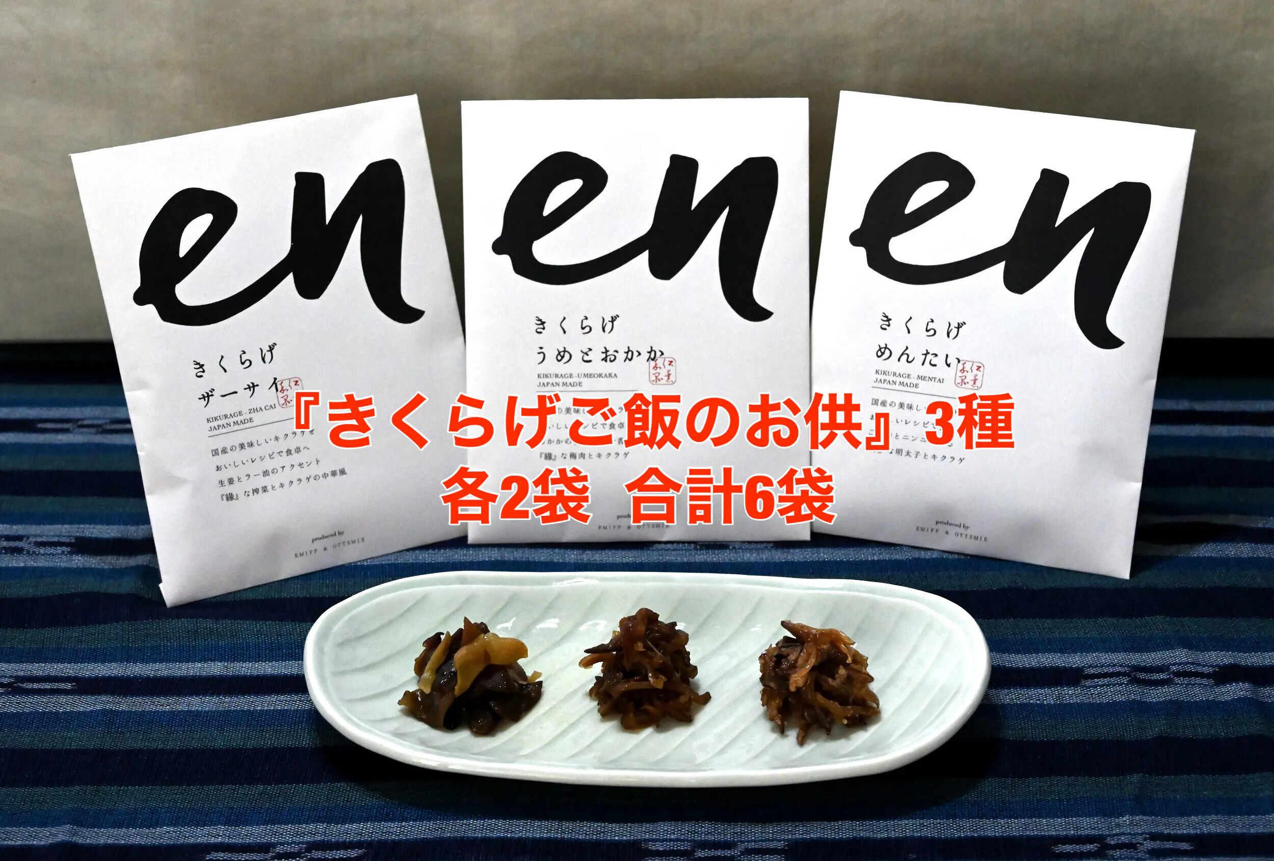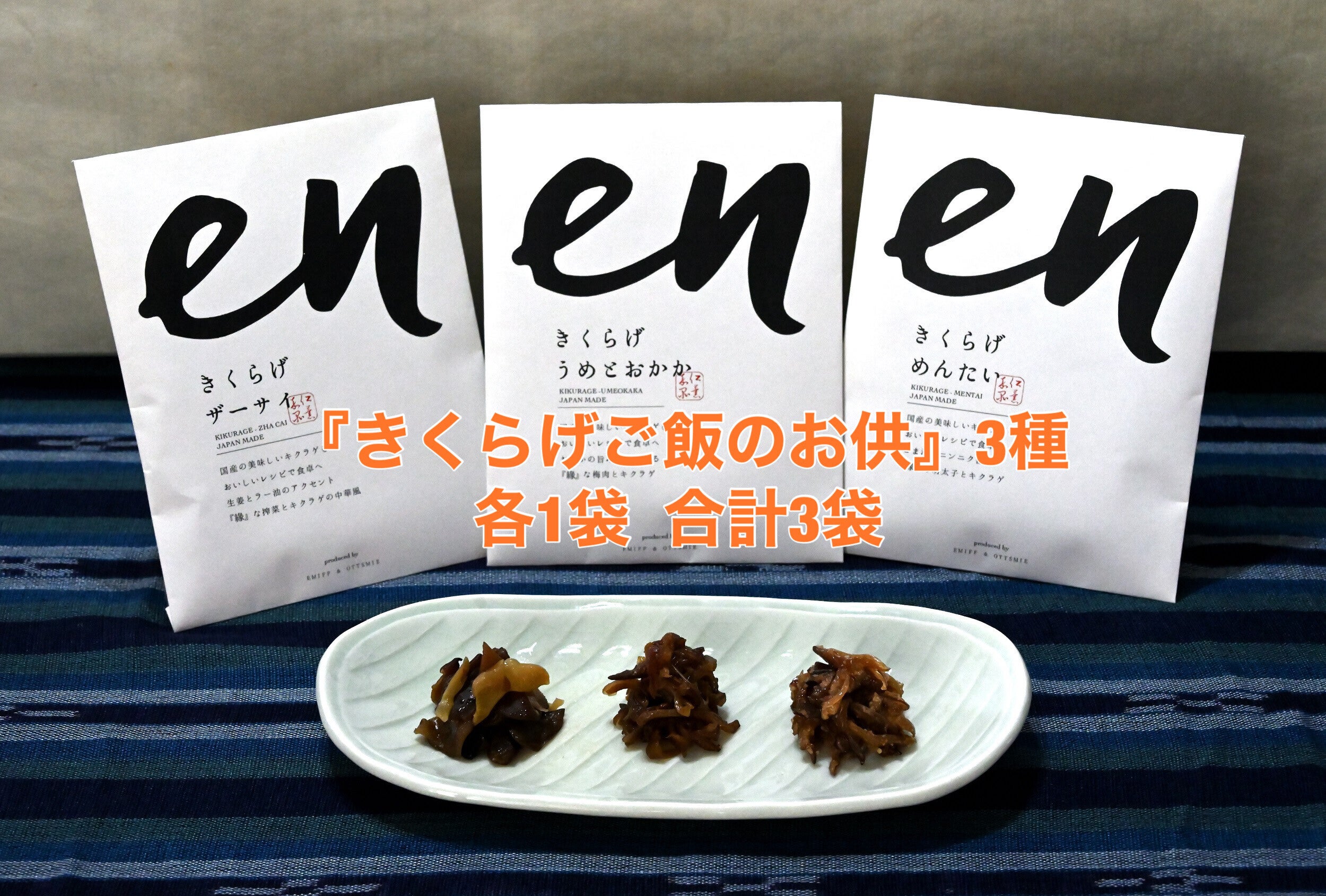 ☆【en】ご飯のお供「きくらげ ザーサイ」「きくらげ めんたい」「きくらげ うめとおかか」