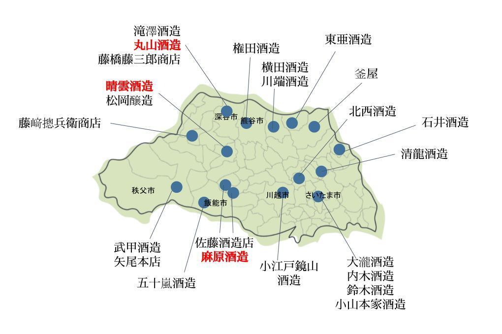 1882年(明治15年)創業の日本酒蔵が毛呂山町に、ビール、リキュール、ワインの製造元であるブリュワリーが越生町にございます。日本酒、本格焼酎はもちろんの事、日本の果物や特産物を使用した和風リキュールやワイン、ビールの企画・開発にも力を入れており、丁寧な酒造りへの情熱と、活気があふれる蔵です。