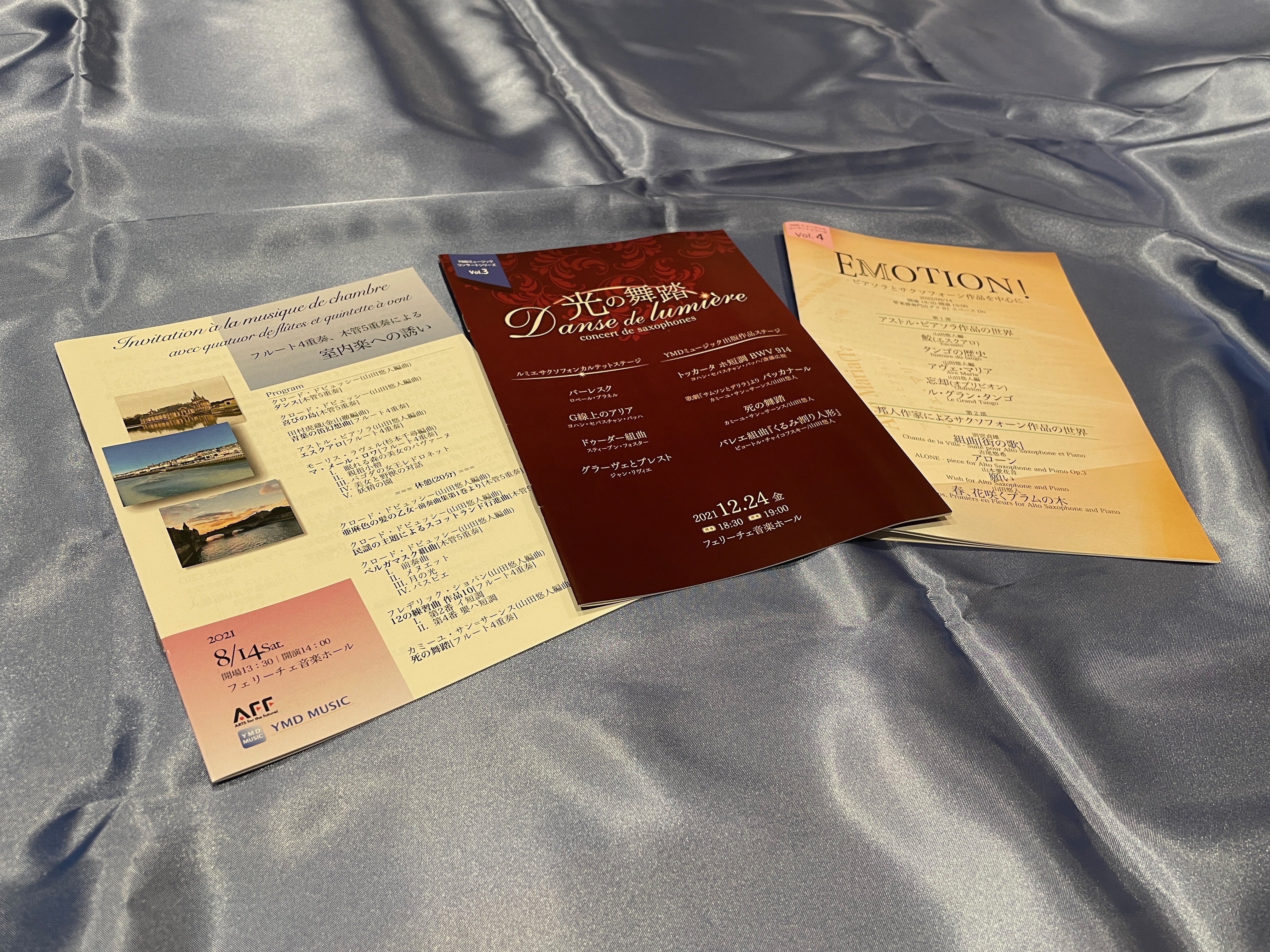 2022年11月12日開催「AFFECTION!2本のサクソフォーンとピアノでお送りする、愛の調べ」の公演パンフレット(プログラム)を本プロジェクトを支援してくださった皆様にお届け致します。YMDミュージックの公演パンフレットはA5サイズの冊子です。楽曲の詳細な解説、演奏会の聞きどころ、コラム等、内容が充実しており定評があります。