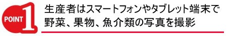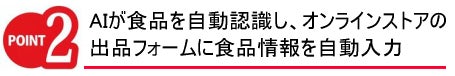 生産者はスマートフォンやタブレット端末で食品の写真を撮るだけで、あとは AI(人工知能)がビッグデータ(ディープラーニング) から情報を引き出し、必要な情報を出品フォームに自動的に入力します。