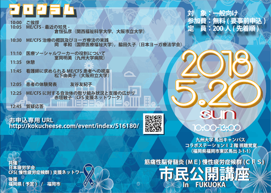 そこで、日本疲労学会とCFS支援ネットワーク(支援団体)では,市民の皆様との情報交流の機会として,今回の公開市民講座を企画致しました。