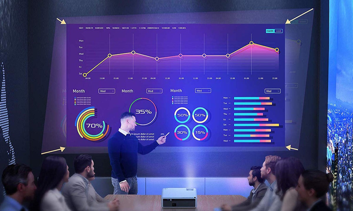 lnVi6500 projectorsは斜めの角度からの投影でも台形の歪みを補正してくれます。