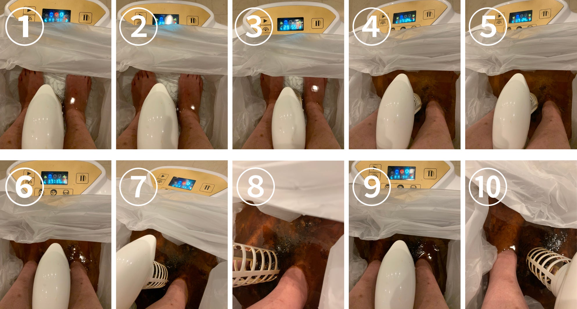 準備が整ったら、いよいよ足湯クリーナーの出番です。足を入れた水が徐々に還元水素水となり、時間経過と共に色をはじめ水の状態が変化していくのが一目でわかります。終わったときにはすっきりした実感が得られますよ!