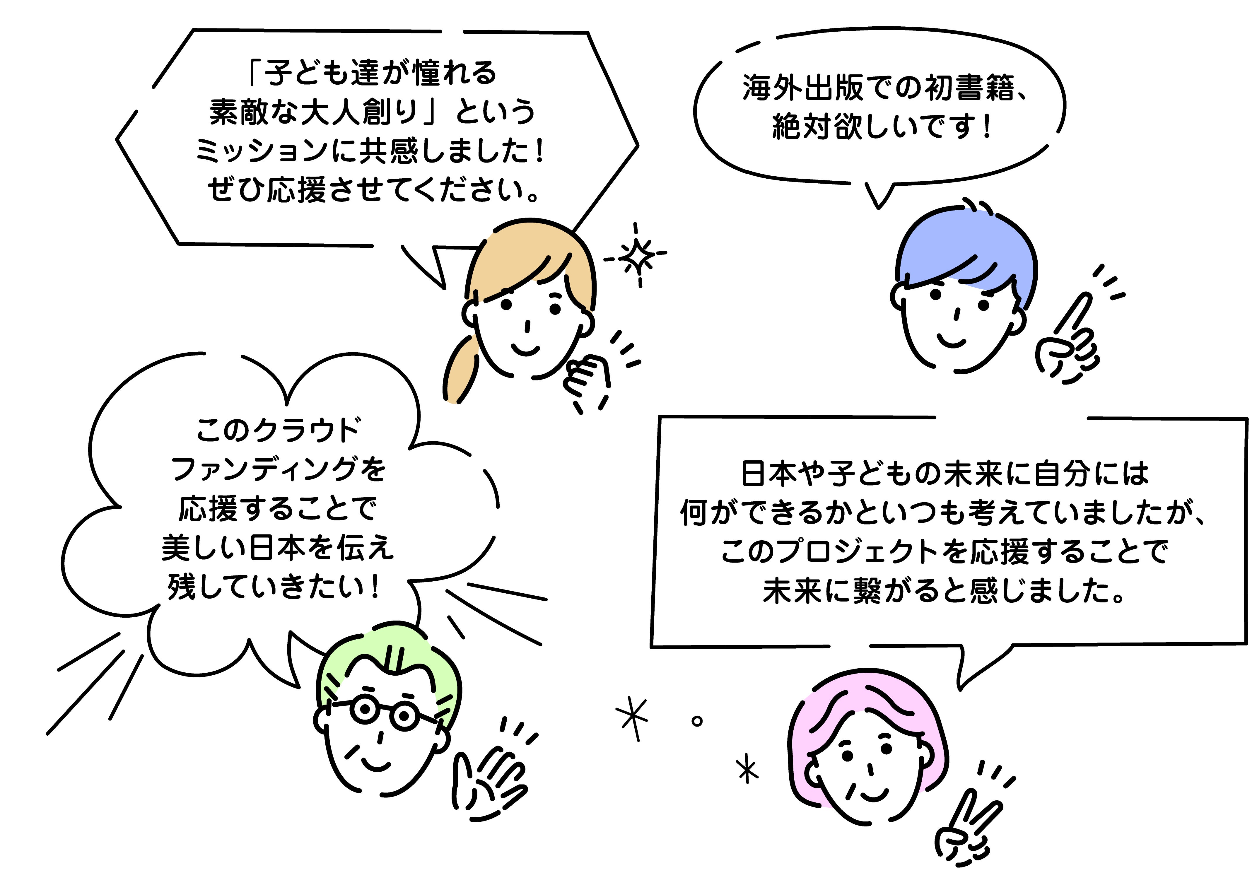 海外の方にも日本人が大切にしているマインドや習慣を伝え、その後日本でも出版を目指し次世代に美しい日本を伝えていきます。記念すべき初めての書籍をぜひ応援してください。