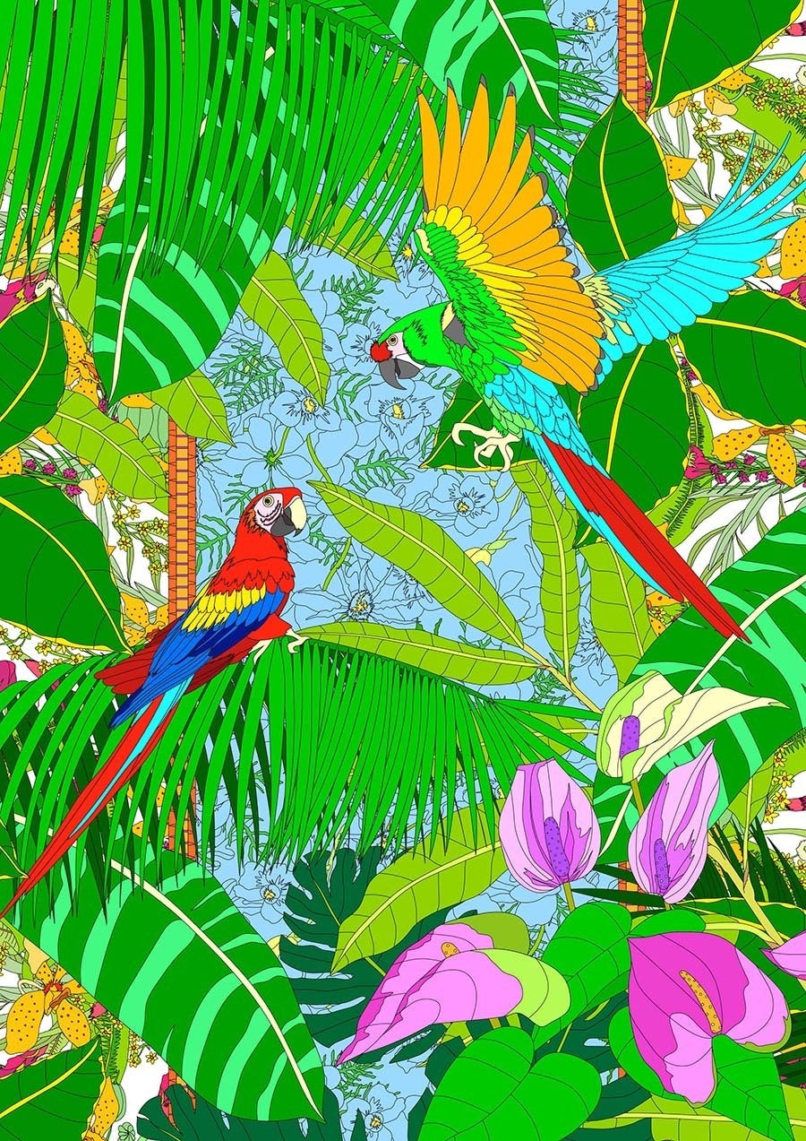南国のジャングルの中、一目で恋に落ちたそんな瞬間を描きました。