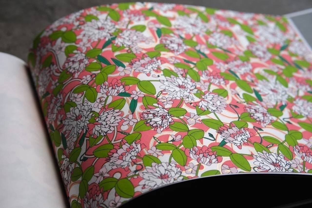 千代紙のアートブックはデザインはもちろん、日本の伝統産業である千代紙の温かみのある手触りも実感していただけます。
