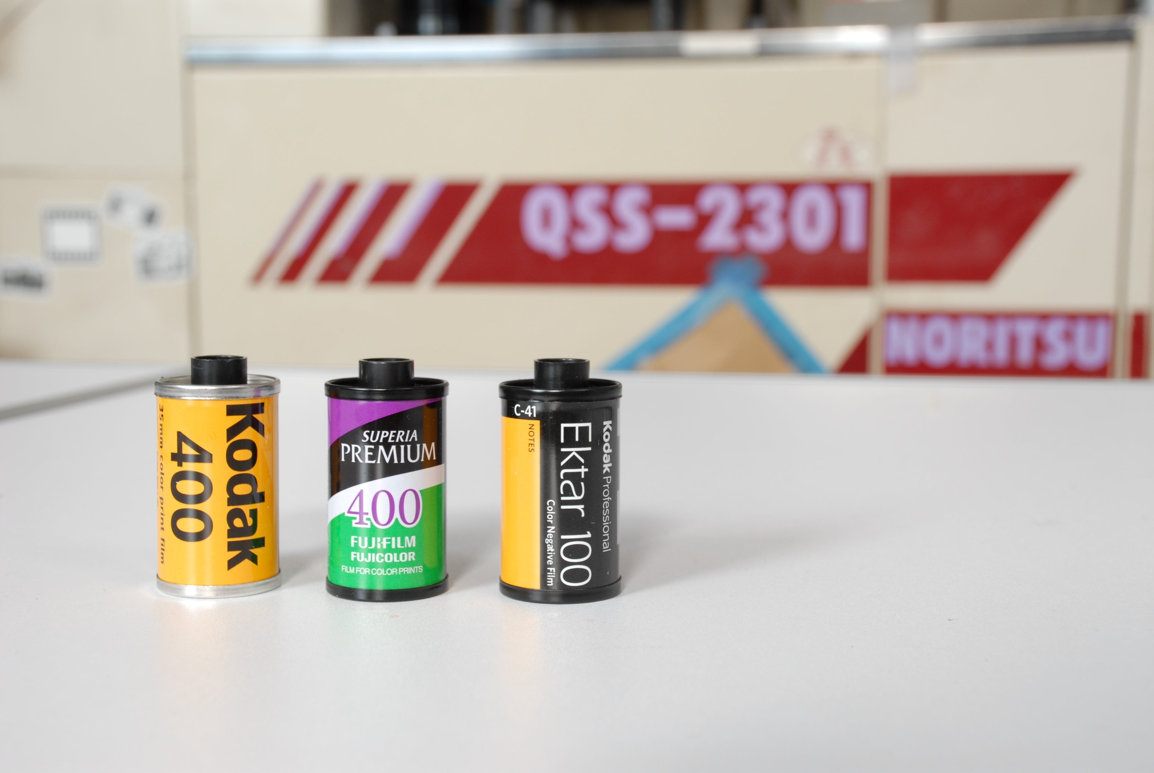 11年前にも同様に北海道の旭川から1台と1/2台分のQSS23 型部品取り機を使いながら継続してきました。現在も店に1台と店の向かいのスペースをお借りして、部品取り機から部品調達をしながら動かしております。また、世界は広いもので主要な消耗部品は、インド・中国の方で製造してくれておりますから、銀塩写真の継続には全く問題はありませんでした。