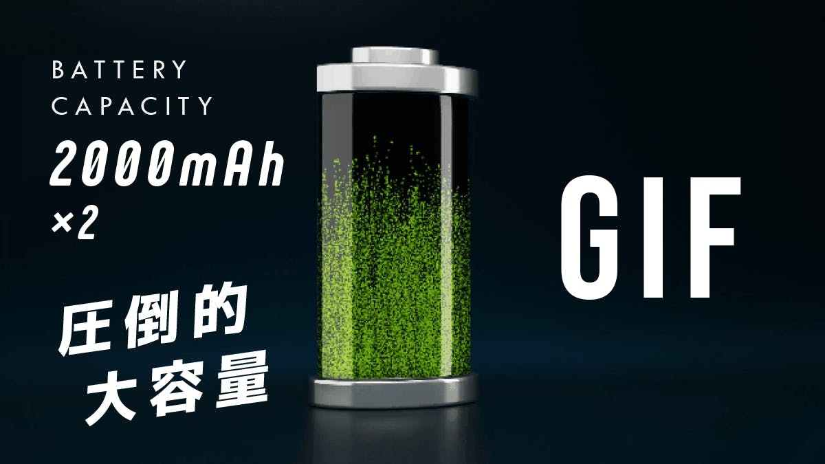 2,000mAh×2(4,000mAh)の大容量リチウムイオンバッテリーは、多くのスマホ等で使われているUSB Type-Cケーブルでバッテリー充電ができます。