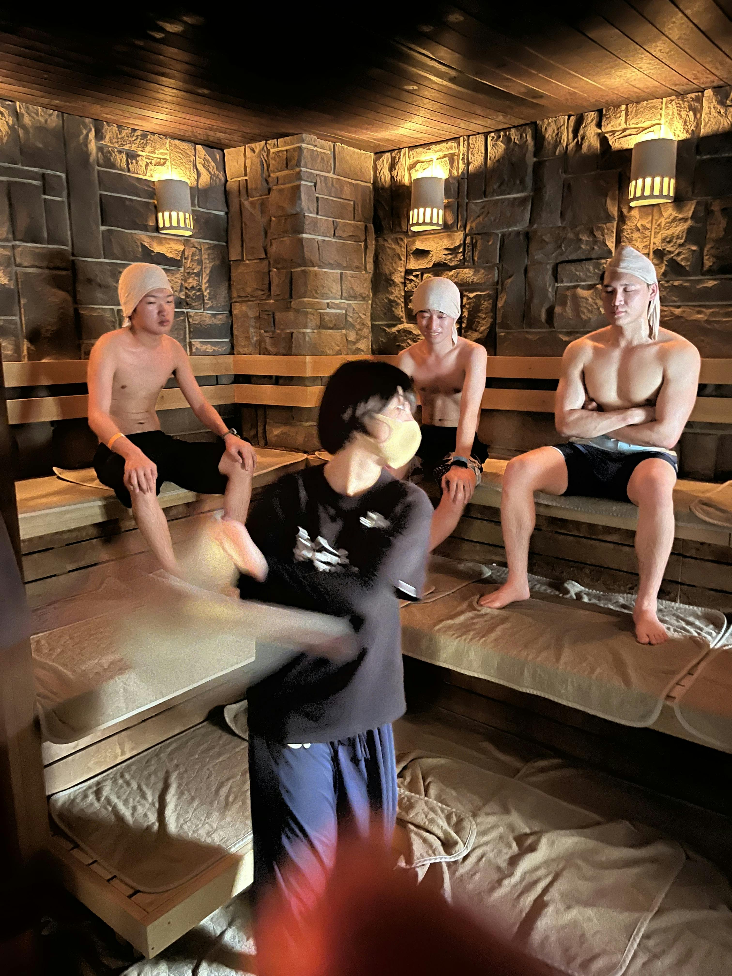 サウナ入ってすぐに、、