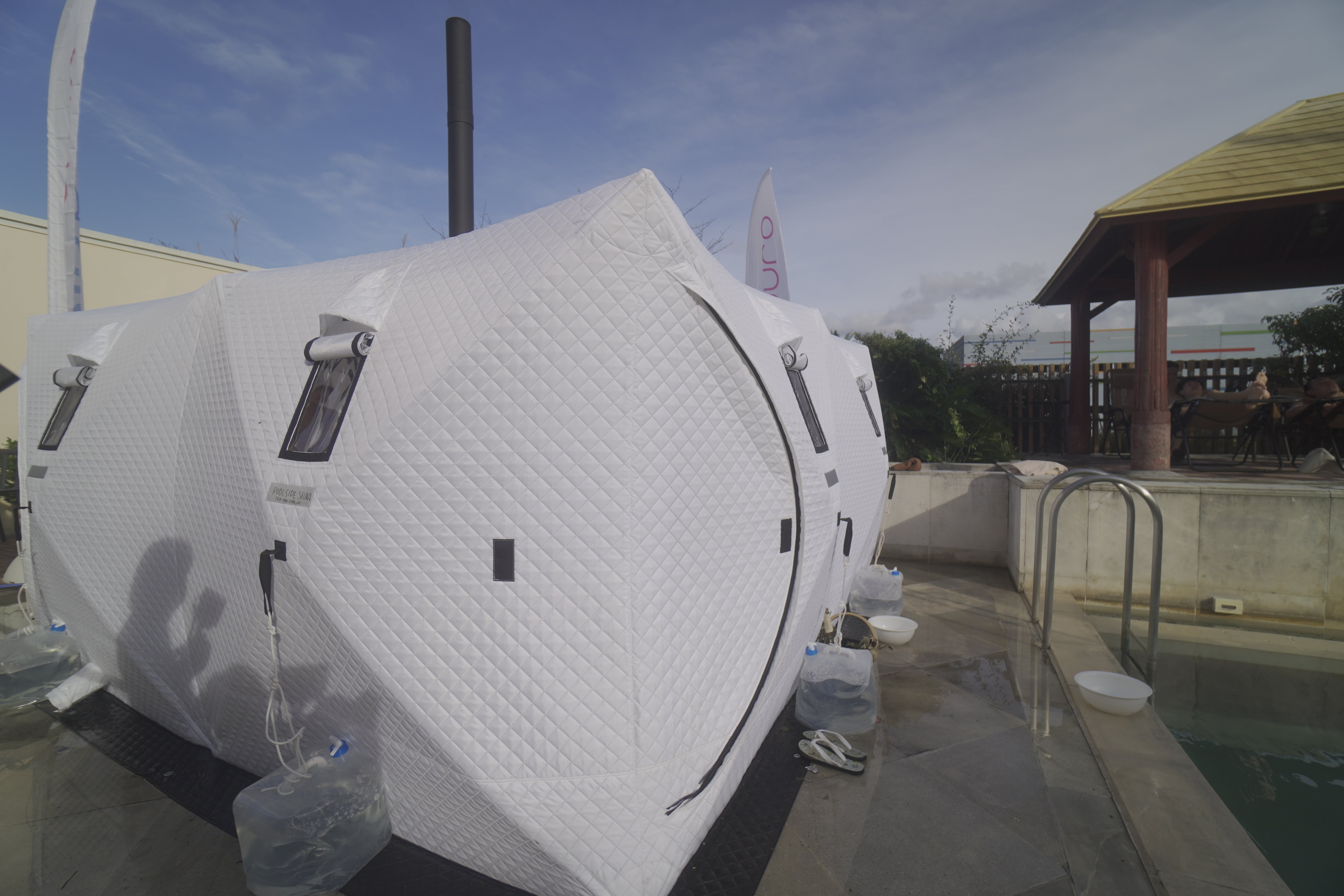 上質な室内サウナに加え、屋外にはテントサウナを設置し、多くの方がサウナを楽しめるようにいたします。プールエリアもあり、サウナのあとは冷たいプールに飛び込んで最高のととのいが得られます!