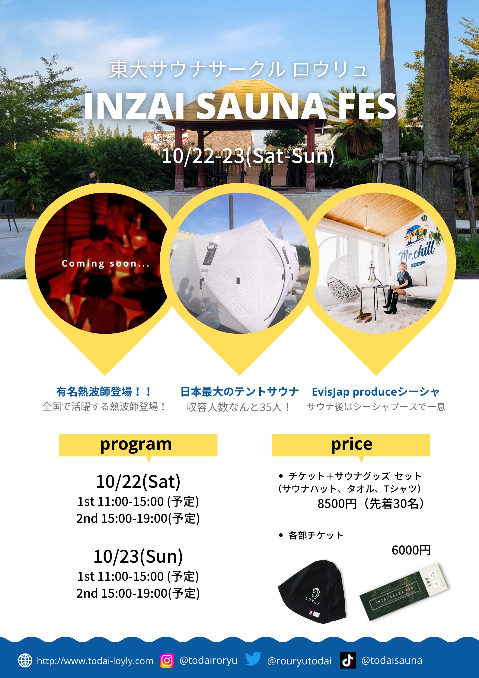 2022年4月に設立されたばかりのインカレサウナサークルです。私たちは今まで、サウナ施設の貸し切りイベントの企画運営や、SNSでのサウナ情報の発信を通じて、学生など若い世代を中心にサウナ業界を盛り上げ、サウナー同士の交流の場を作ることをしてきましたが、今回【東大生が本気で企画したサウナフェス】に大人から学生まで楽しめるフェスを開催することで、サウナ界をよりもりあげていきたいです!