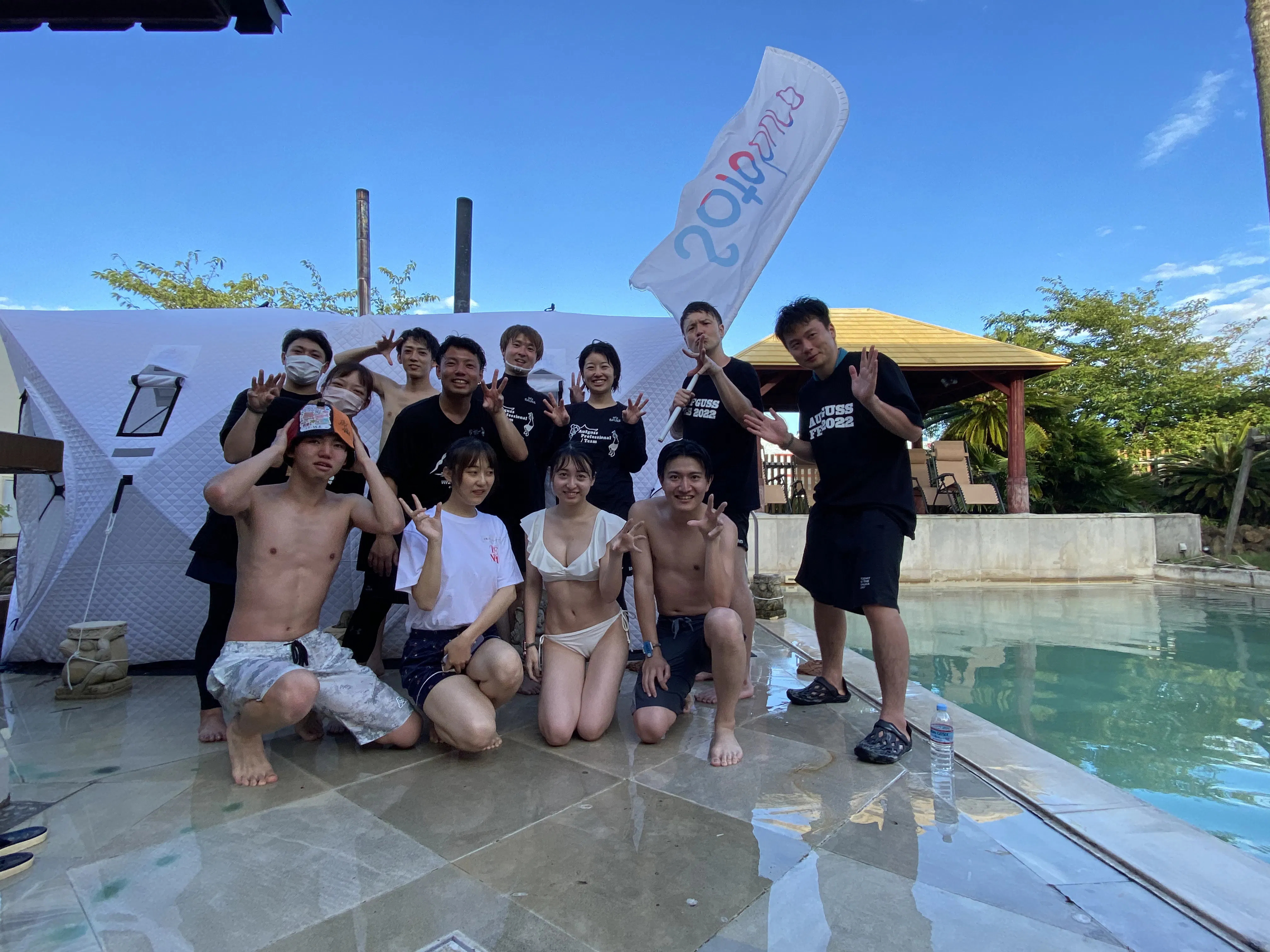コロナ禍を経て、私たちの大学生活は失われてしまいました。オンライン授業が主流となり、学生同士の横の繋がりが徐々に希薄になっているのを感じました。これは、学生に限ったことではなく、あらゆる年齢層、あらゆる立場の方が、人と人の繋がりが減ってしまっているのを感じているのではないでしょうか。そこで私たちはサウナに注目しました。今までひとりで楽しむものとされてきたサウナも、サウナブームの広がりにより楽しみ方が多様になりつつあります。友人や先輩後輩と共にサウナ施設を開拓したり、熱波師のパフォーマンスを楽しんだり、郊外の自然の中でテントサウナを楽しんだりと様々な楽しみ方が提案されています。サウナで汗をかき、水風呂に入って「ととのう」、一連の身体活動をともに体験することで一体感を感じ絆を深めることができます。このサウナの力を使って、初対面の人でも、立場の違う人でも同じサウナ仲間として交流することのできる、そんな場所を作りたいと考え活動を始めました。