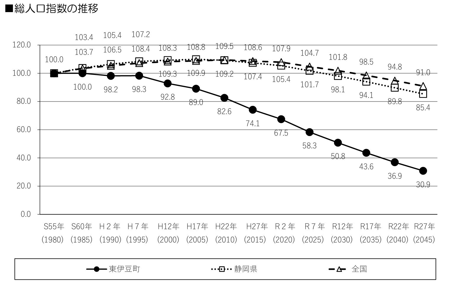 東伊豆町では現在少子高齢化、過疎化が進み、深刻な問題として、行政も解決に向けて取り組んでいます。(東伊豆町2022年3月の資料から)
