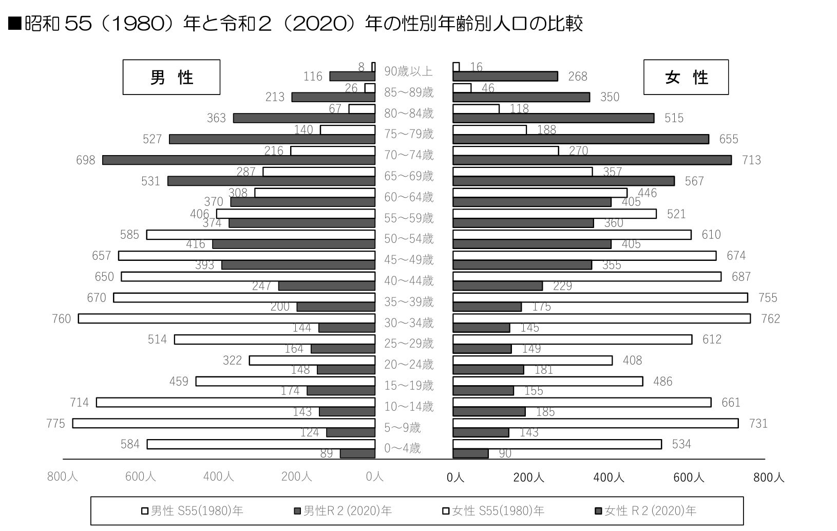 年代別で見ると少子高齢化が進んでいることが分かる
