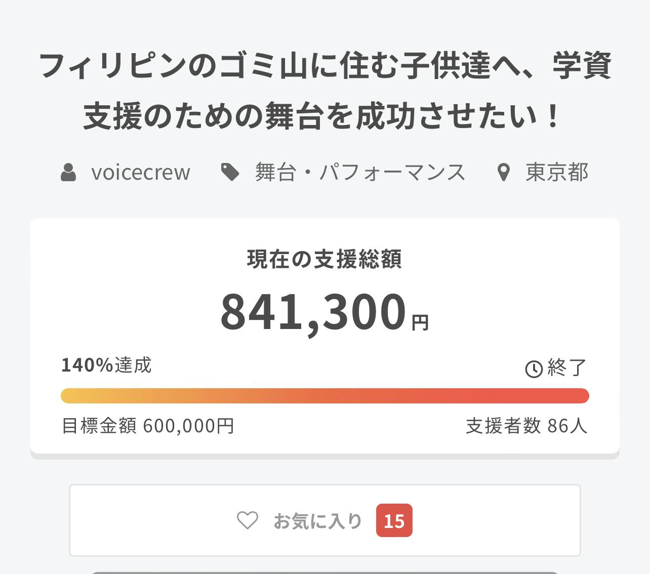 目標金額まで、あと少し!!