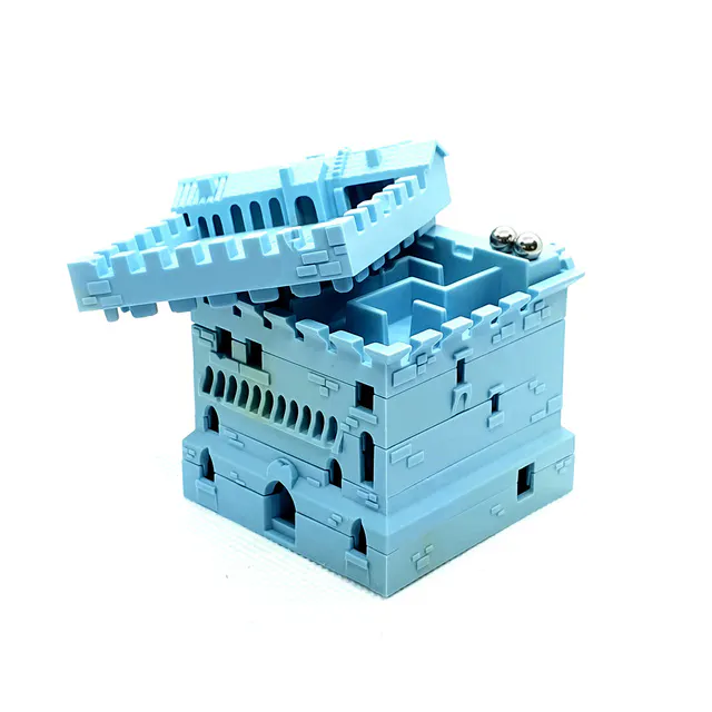見えないキューブ(DONJON迷宮)の中、小さいボールを手の感覚と音だけを頼りにゴールまでたどり着かせる