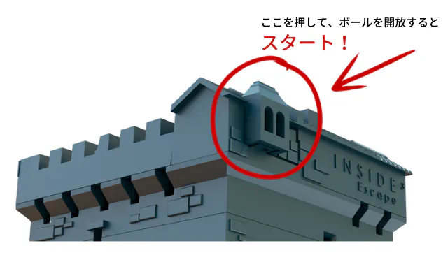 DONJONを傾けながら塔の上のバルコニーを押すとボールが出てスタートできます。