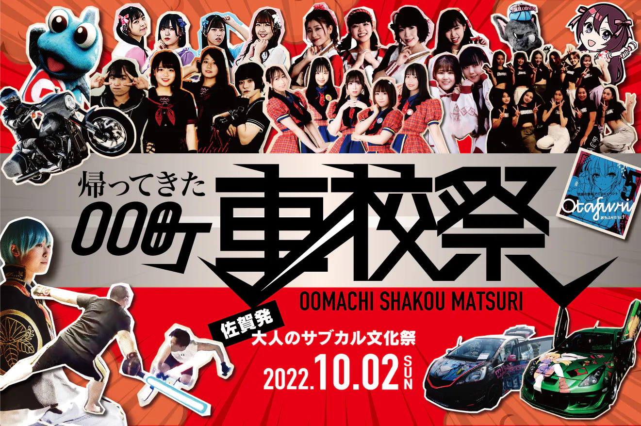 10/2(日)「帰ってきたOO町車校祭2022in鍋島」で開催するポップカルチャーのフリーマーケット【 ぽぷふり 】の出店申し込みの受付を開始しました!