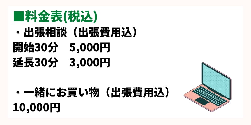 パソコンやスマホの買換、付属品のお買い物に同行します。