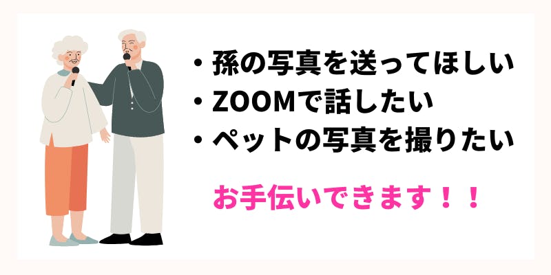 ご家族やお孫さんとZOOMで会話をするためのお手伝いをします。