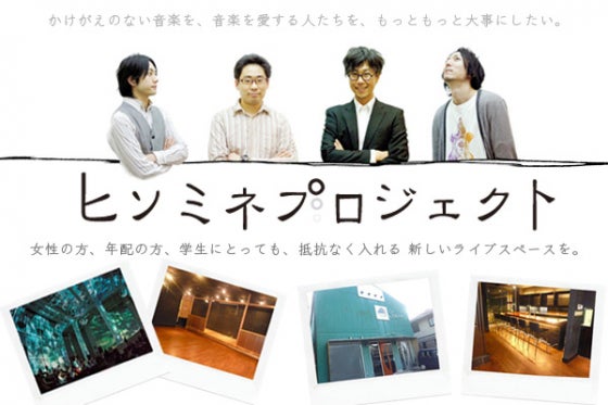 私たちは、音楽を愛する気持ちから、『ヒソミネプロジェクト』を立ち上げました。今回、支援を呼びかけさせていただくのは、ライブ・スペース立ち上げのためだけでは断じてありません。音楽文化の将来に向けて、全員で一丸となって協力していく――