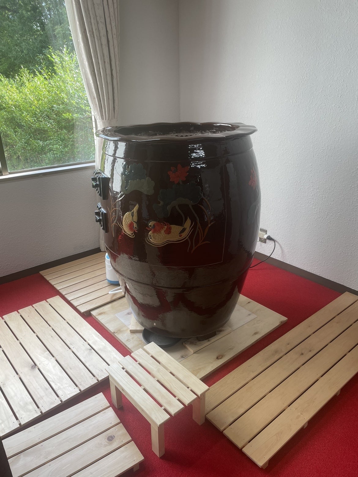中国から取り寄せた太古のカメに入って汗をかくことで、身体も心も温まります。