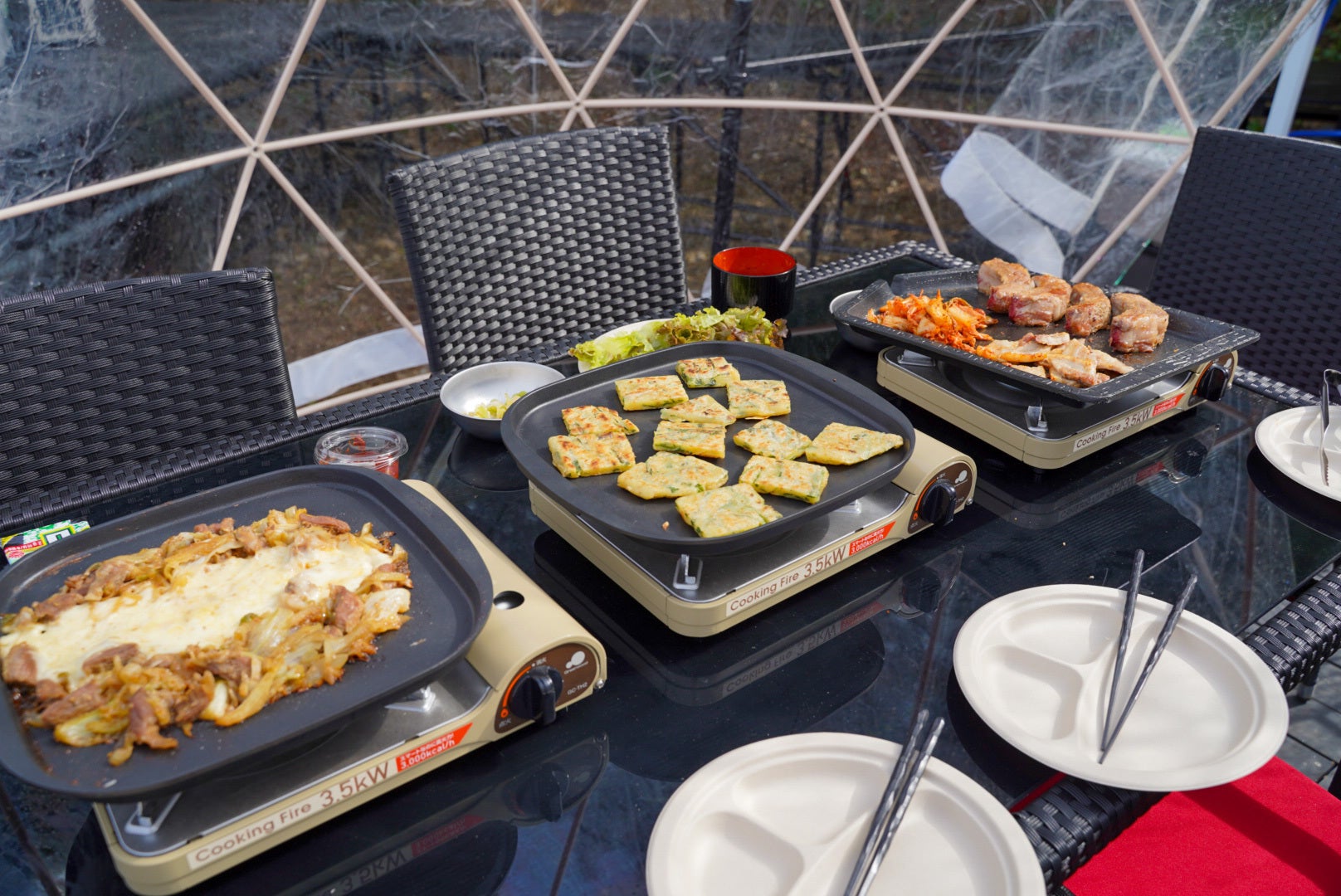 夕食はグランピング最大のイベントとなる、韓国式BBQをご用意しております。