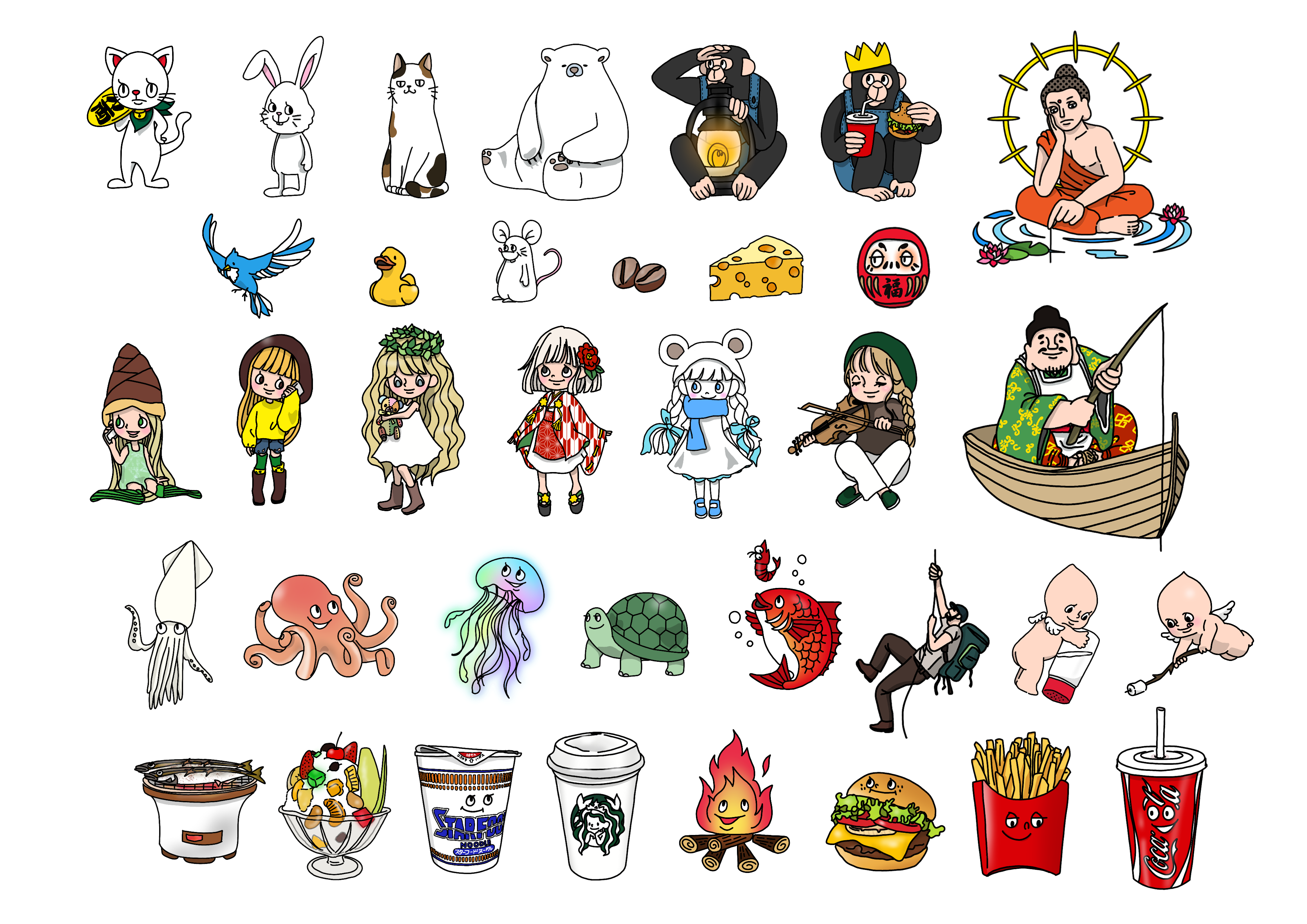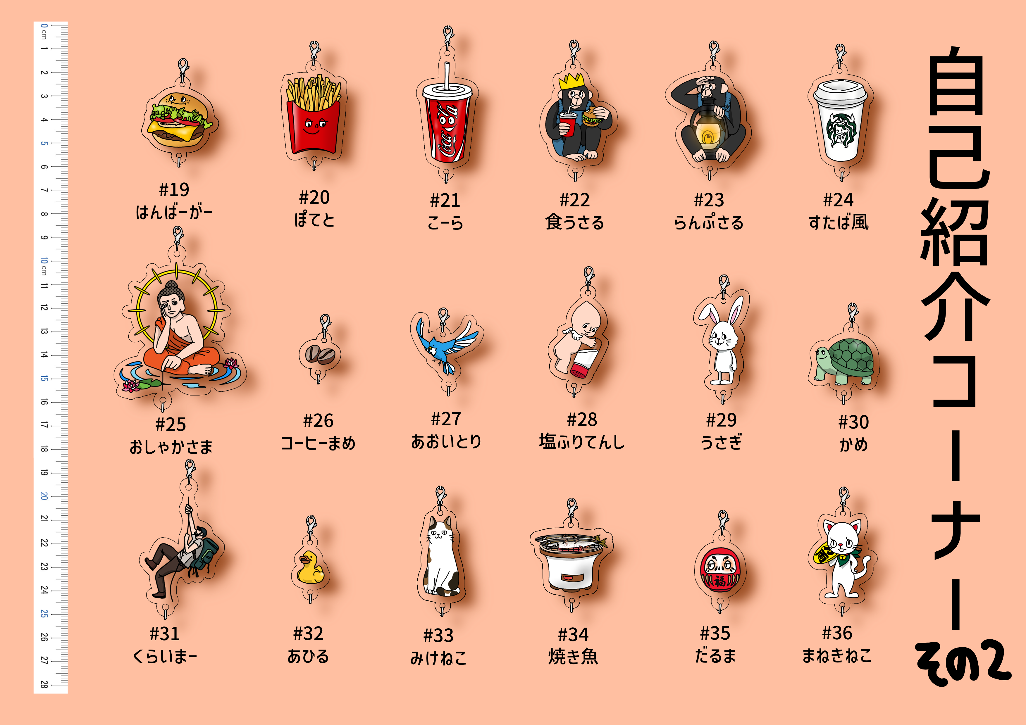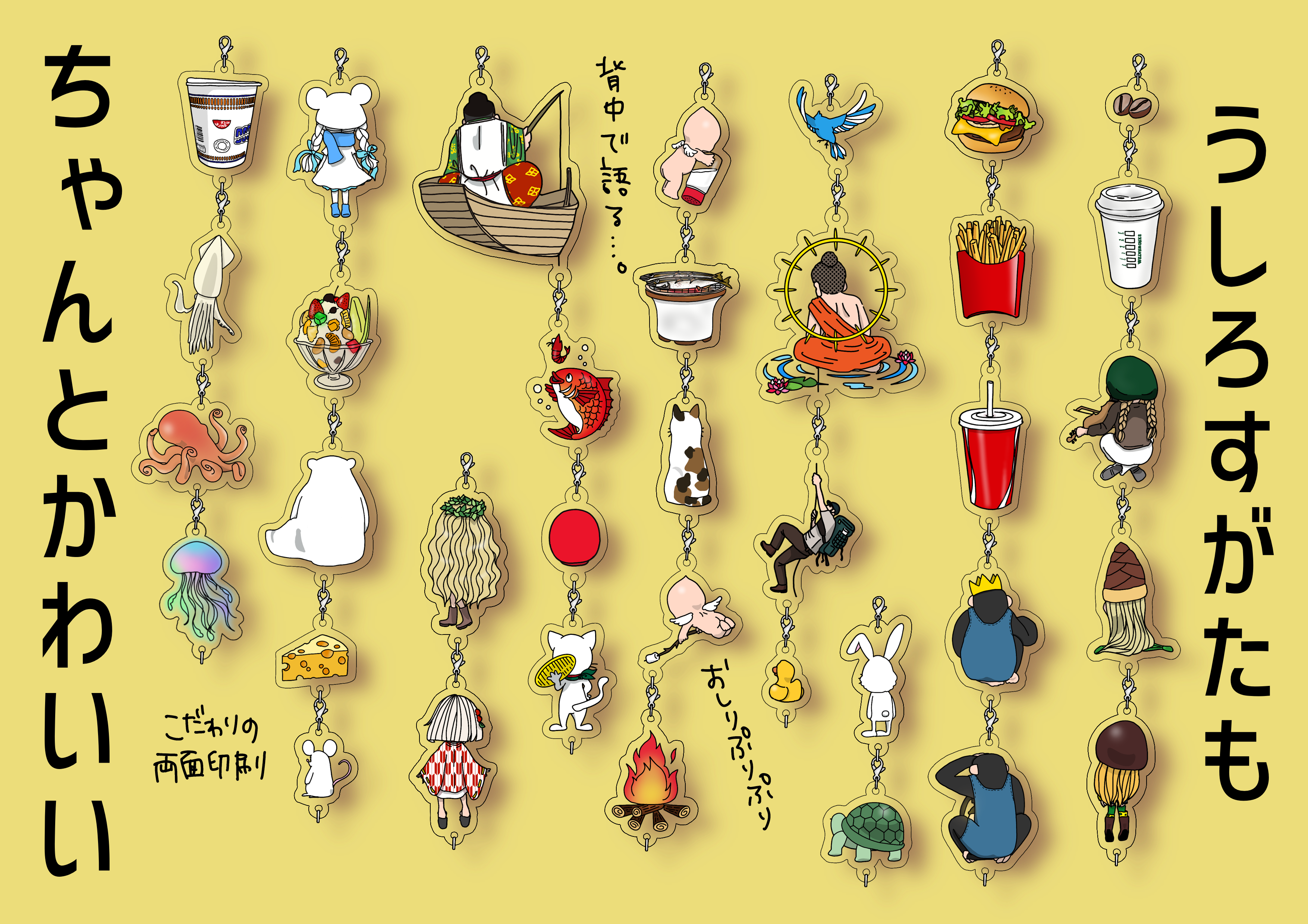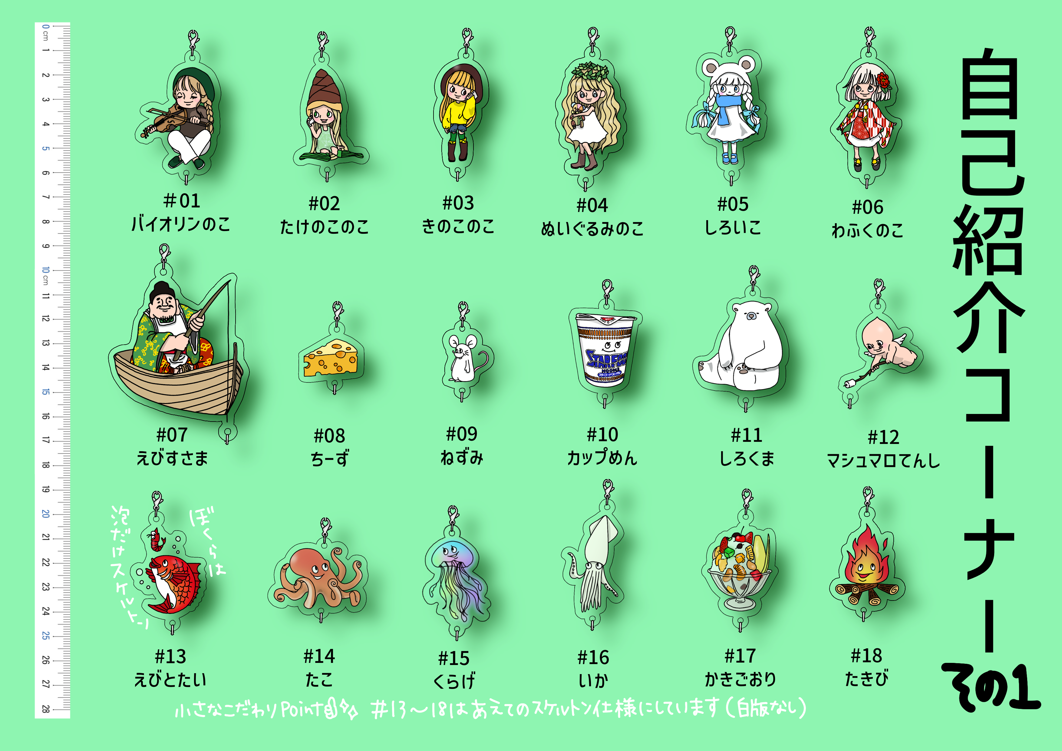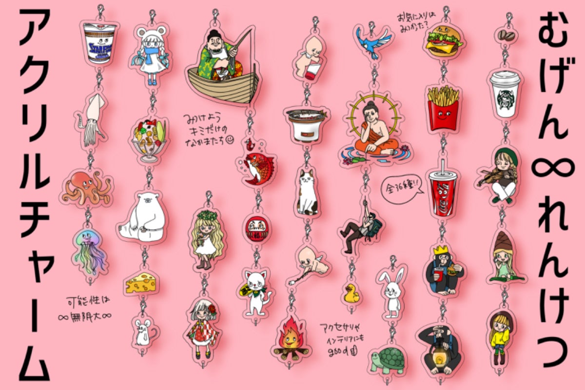 無限連結できるアクリルチャームを作りたいっ!そんな一心で36種の子たちを描きました。