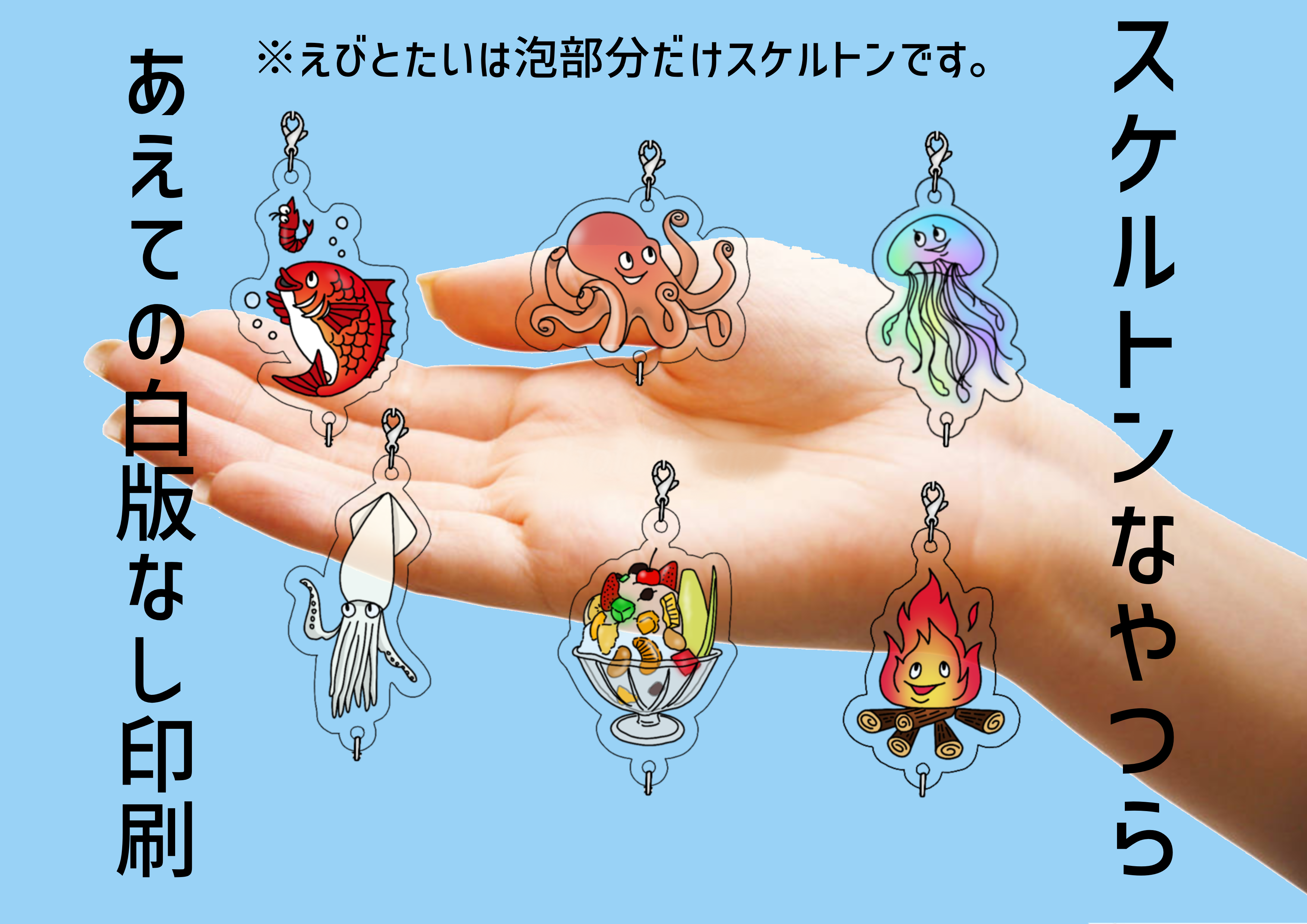 スケルトンシリーズはあえて透け感を楽しんでいただきたくて、白版なし印刷にしています。