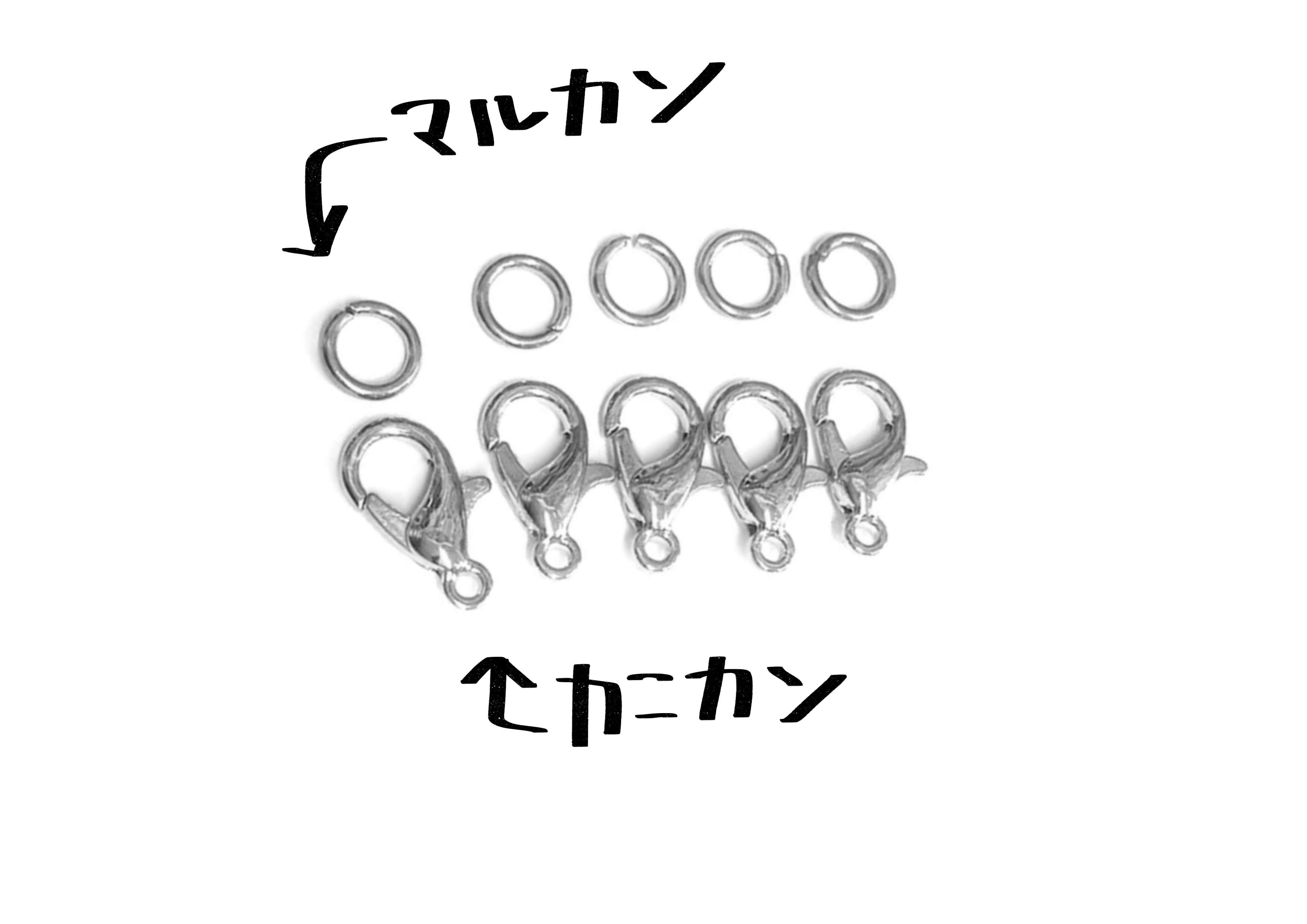 上部の連結穴にカニカンとマルカン、下部はマルカンをお付けした状態でお届けします。