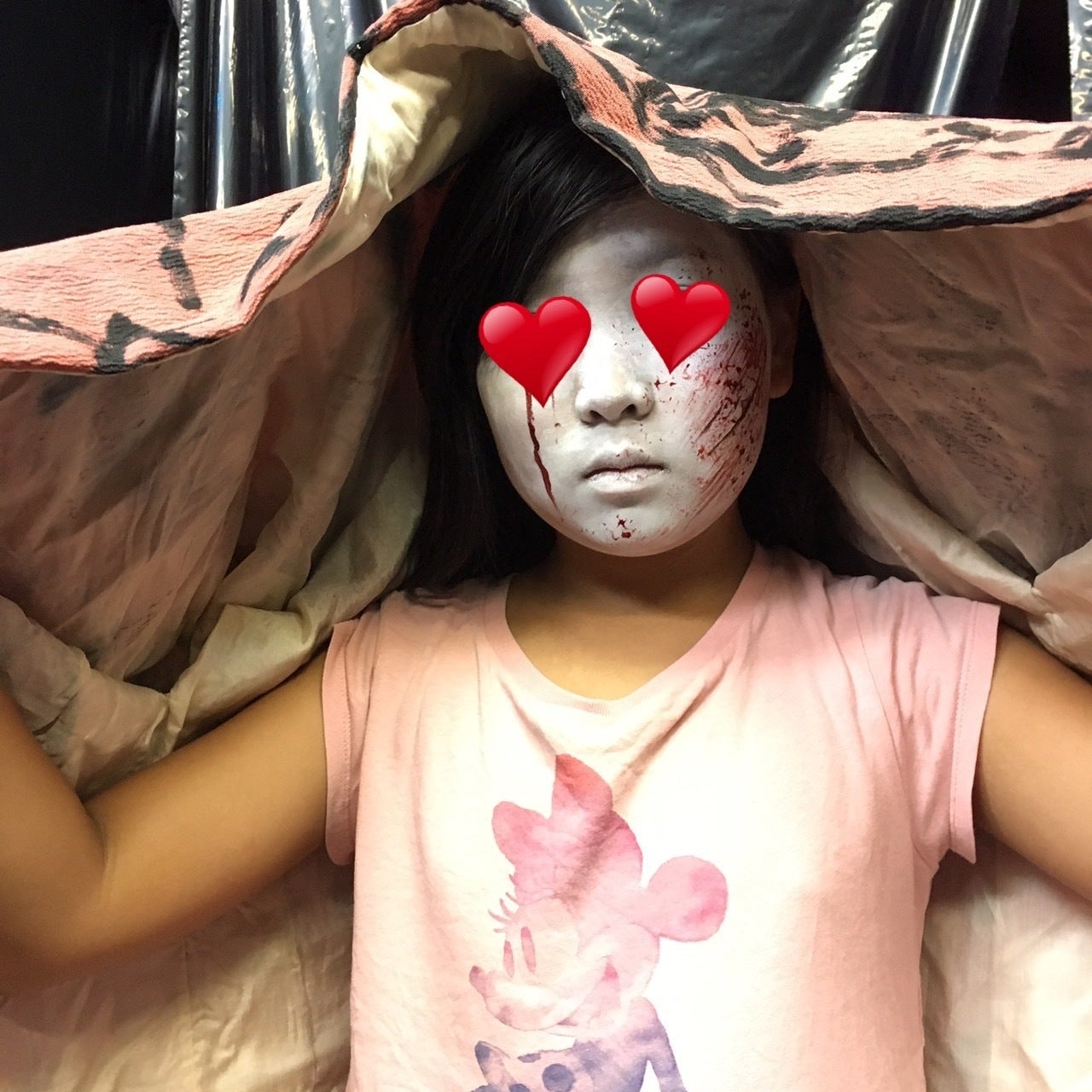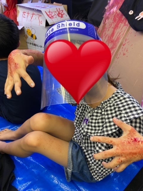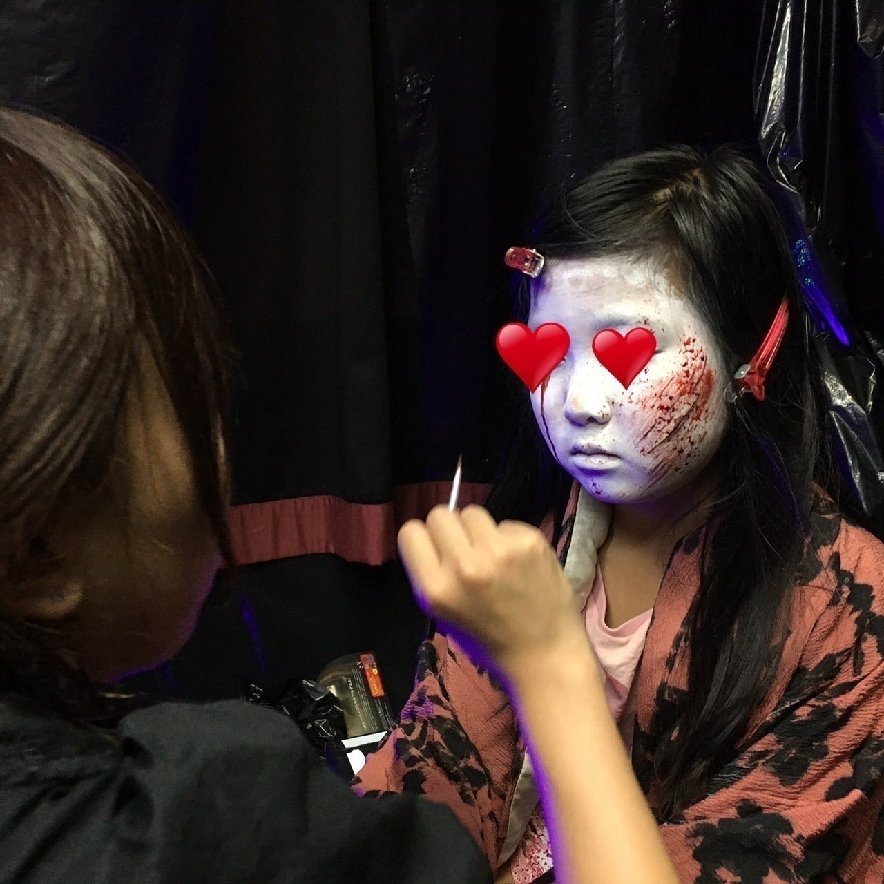 メイクをしてもらった子供たちのお顔をはっきり出せないのが残念ですが、子供お化けも十分怖いです。