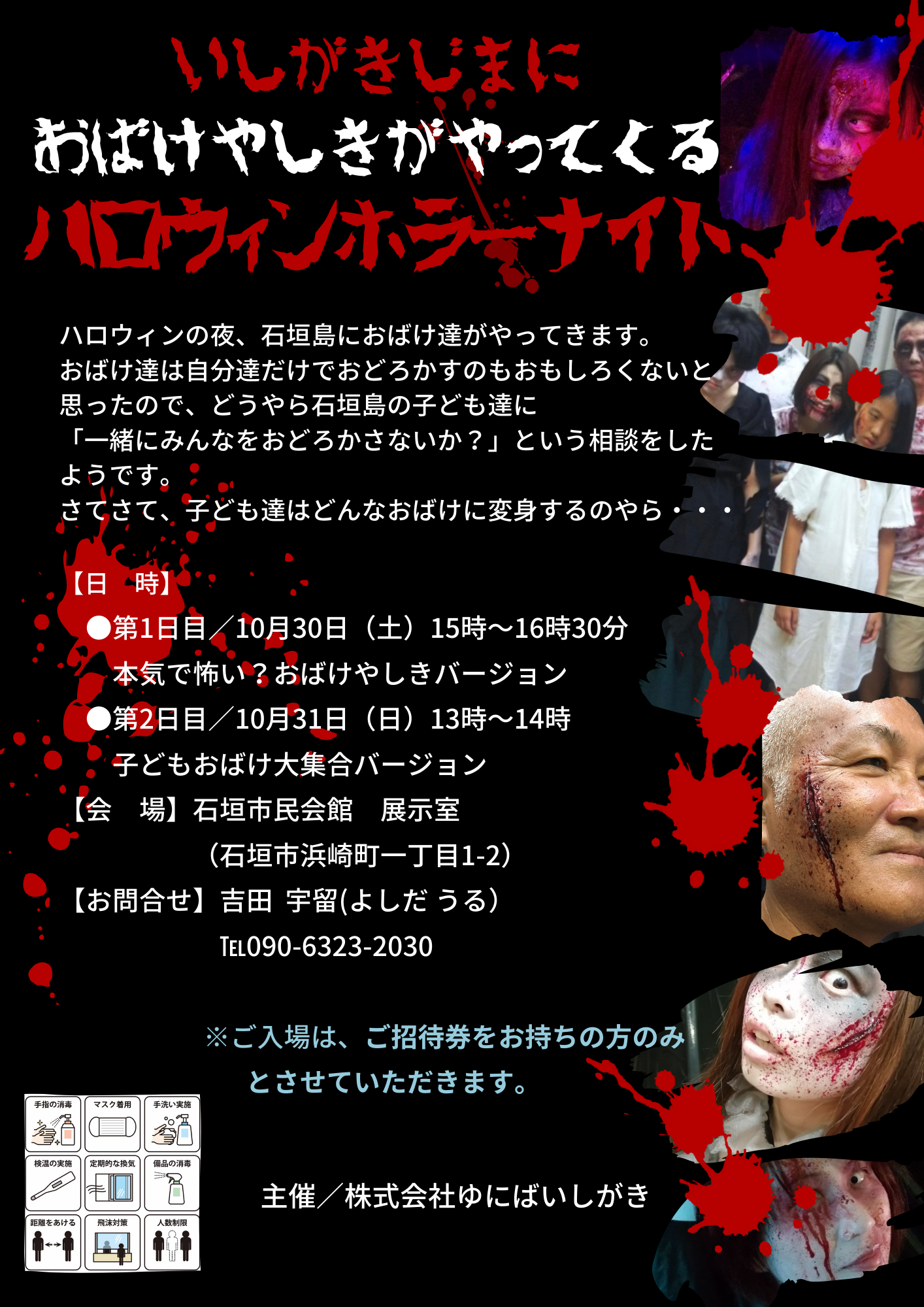 石垣島では、2021年10月のハロウィンに株式会社ゆにばいしがき様のお力をお借りして『石垣島の子供たちが作るお化け屋敷』を開催することができました。