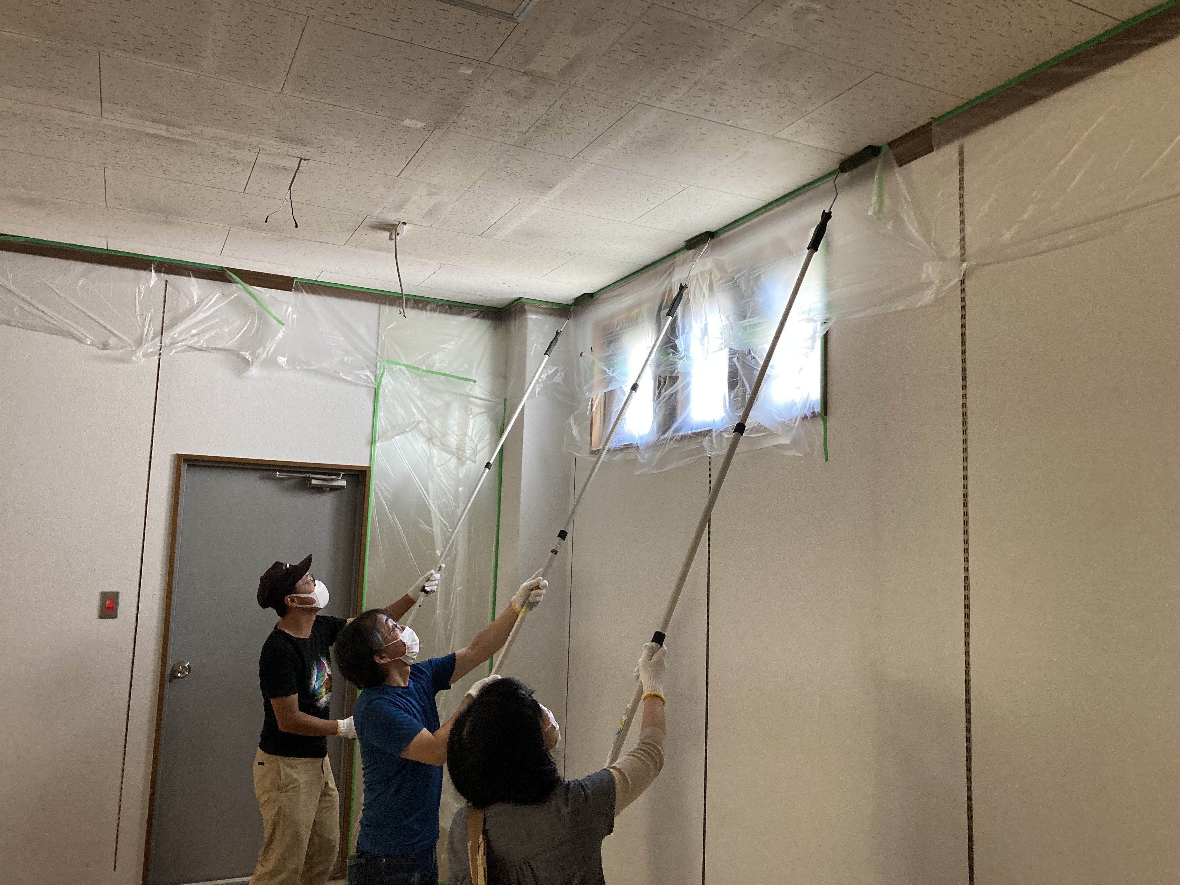 目標達成しました!クラウドファンディングの目標達成しました!!たくさんの方々にご支援頂きました。本当に、本当にありがとうございます!!多くの方に共感していただけたこと、応援していただけたことを嬉しく思います。自分たちだけのプロジェクトではないということを意識し、今まで以上に頑張っていきます。引き続きよろしくお願いいたします!DIYワークショップ壁を塗る日壁をDIYで塗装しました!2022年10月29日、天井の塗装に続き壁の塗装です。天井の深い緑に合わせたのはほんのりグレーがかった白色「淡雪」という色です。こちらの塗料は尼崎にも縁がある関西ペイント株式会社様から提供を頂きました。「漆喰塗料アレスシックイ」という塗料で、ペンキのように簡単に塗れるのに、漆喰成分が消臭や吸湿、除菌などの効果がある、図書館にうってつけの塗料です。関西ペイント株式会社様ありがとうございました!ワークショップには我々オリコム、関西国際大学以外に前半5名、後半4名の方に参加頂き、天井に引き続き賑やかで楽しくできました。参加頂いた方同士でお話が弾んだり、さんとしょが新たな出会いの場になっていたのが、嬉しかったです。次回は11月5日に、床板を貼ります。いよいよ部屋らしくなっていくので、楽しみです。ご参加お待ちしております!