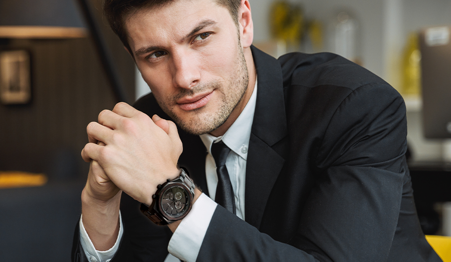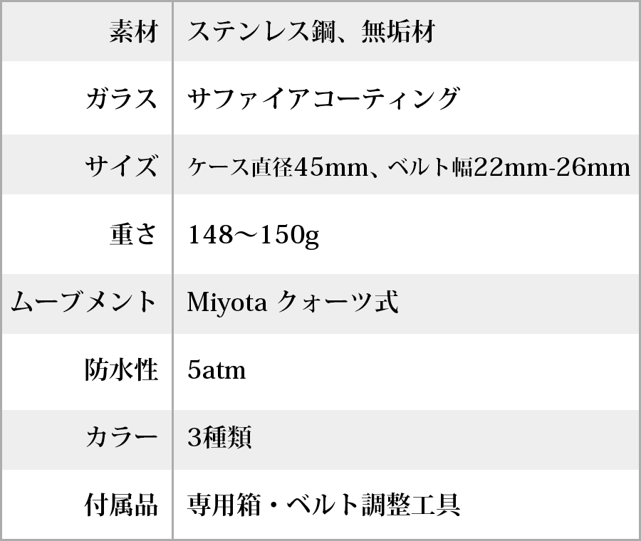 ビジネスシーンでは高級感の出るステンレス鋼のベゼルで。