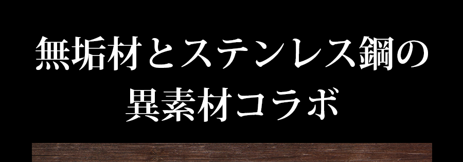 素材には無垢材の他に、錆びに強く長年に渡り美しい状態を維持するステンレス鋼を採用。