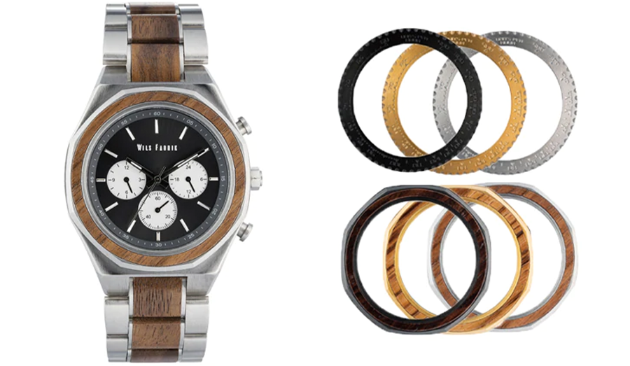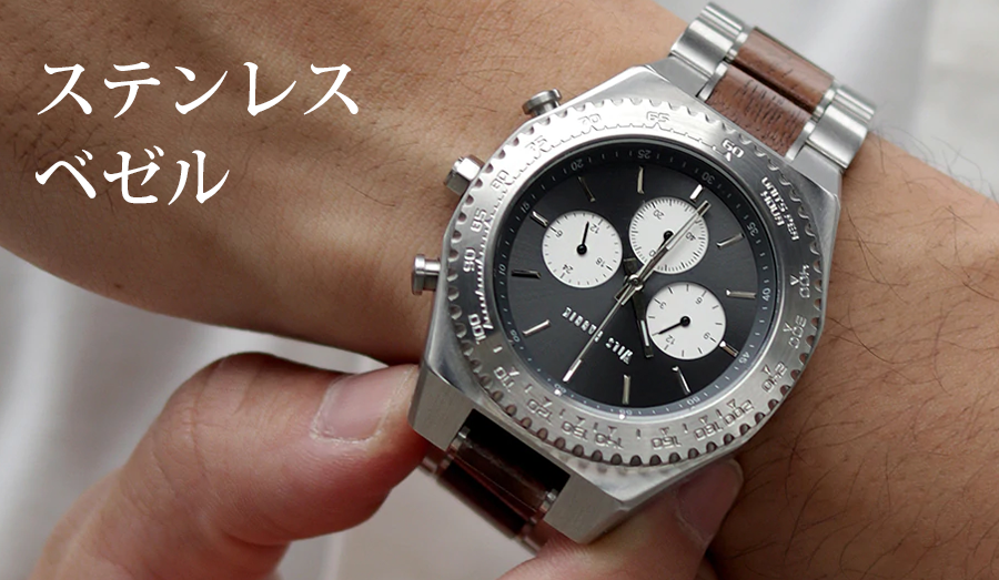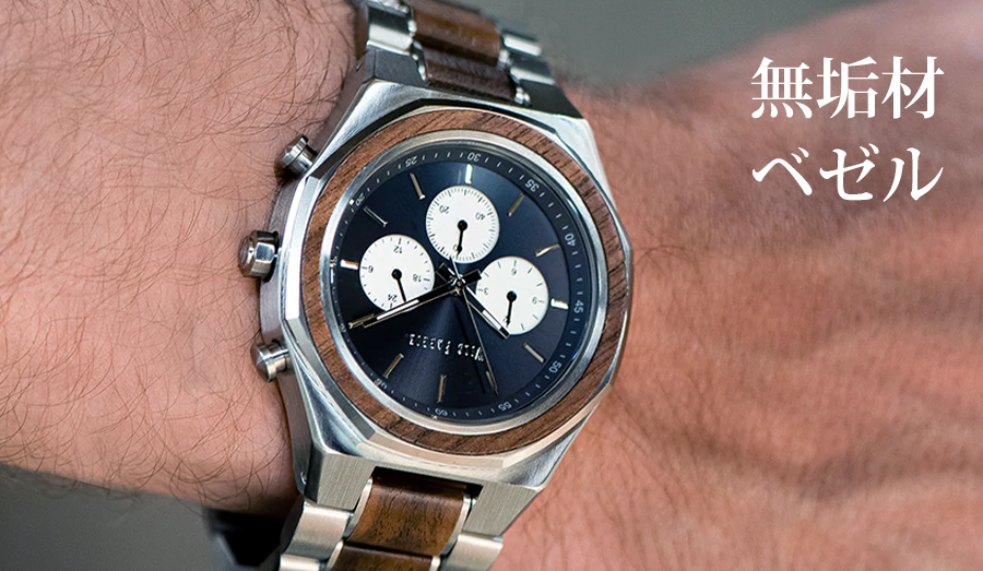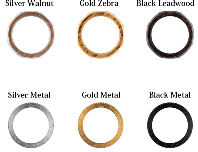 無垢材とステンレス鋼のベゼルを自由に交換することができます。