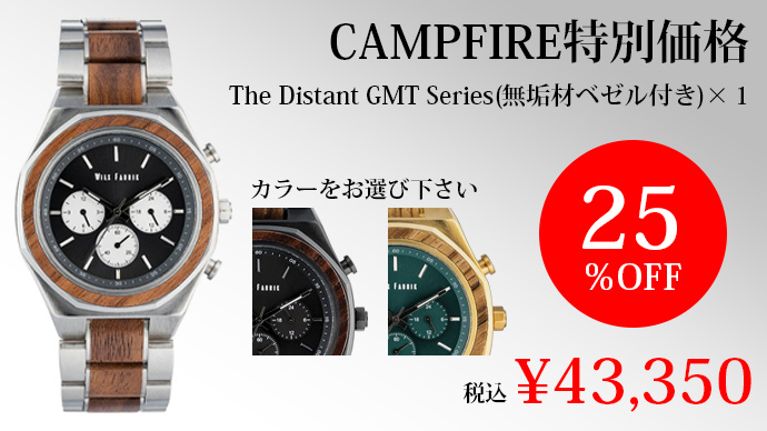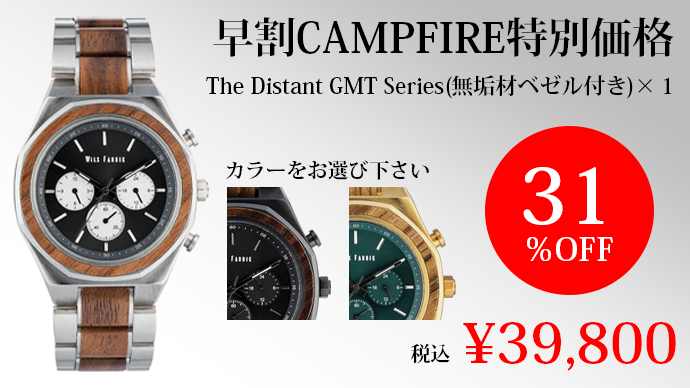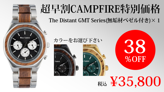 2022/09/30 22:00はじめまして。この度「The Distant GMT Series」のプロジェクトを公開しました。CAMPFIRE限定の先行販売に加え、特別価格でご用意しております!ドイツ生まれ日本製ムーブメント、高級木材使用の「The Distant GMT Series」 の魅力をページからご確認ください。皆様にお届けできる日を楽しみに、プロジェクトを進めてまいります。どうぞよろしくお願いいたします! もっと見る