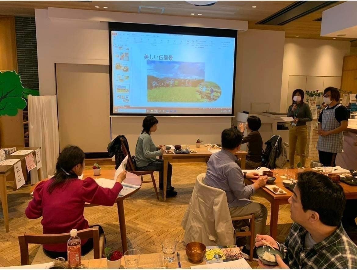 内容:農薬を使用せずに育てた棚田米のおにぎり体験、棚田米を使ったお酒と食を楽しみながら長野県のPRの交流会