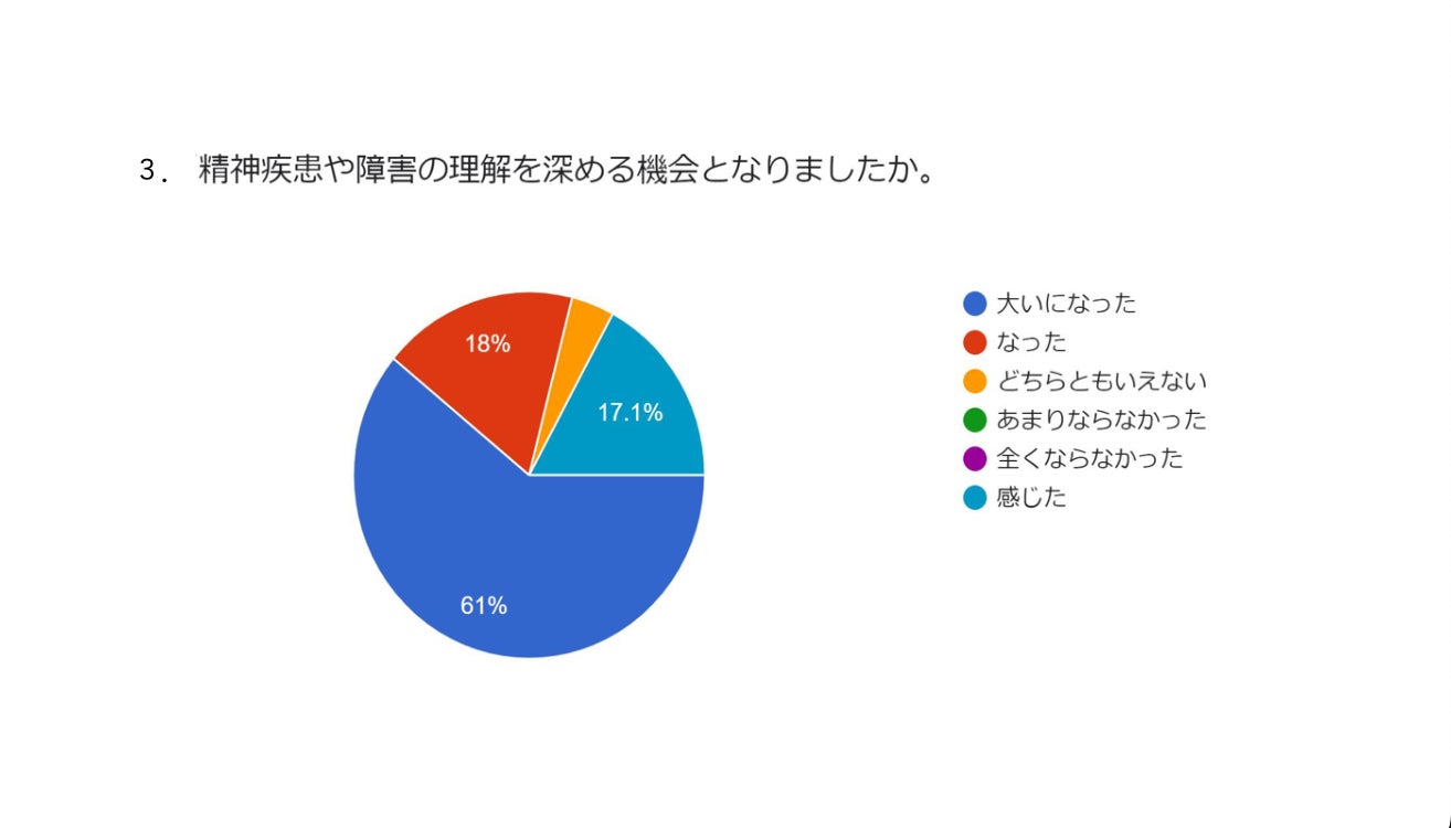 79%の方が精神疾患や障害の理解を深める機会になったと回答