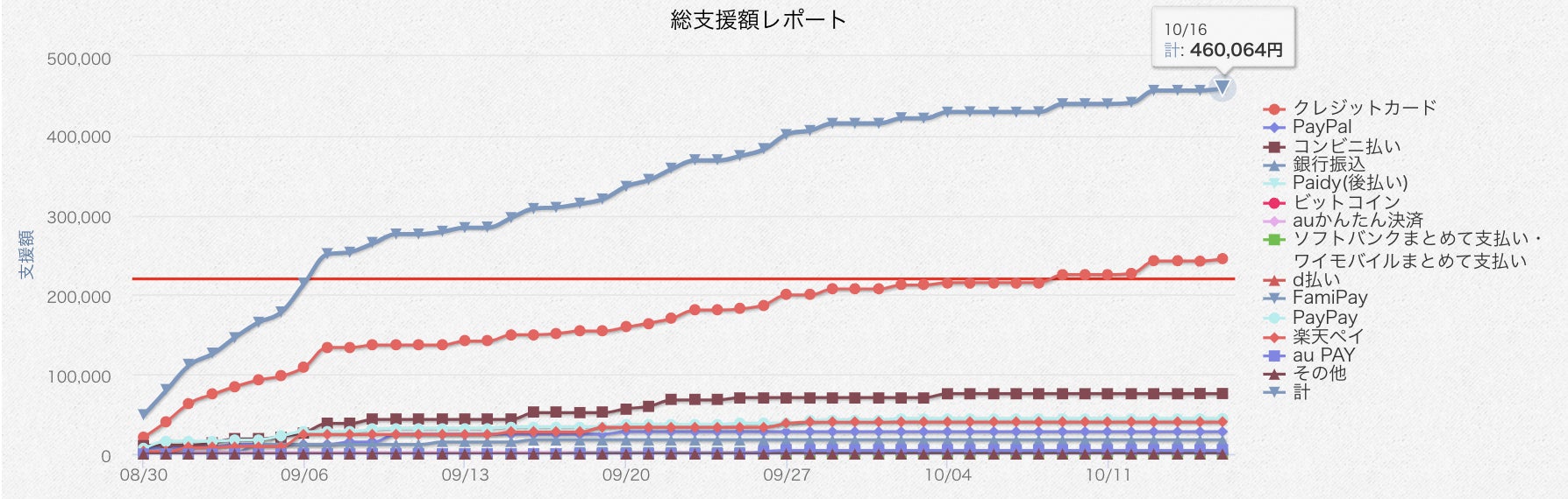 クラウドファンディングの支援額の推移は下記のグラフのようになりました。