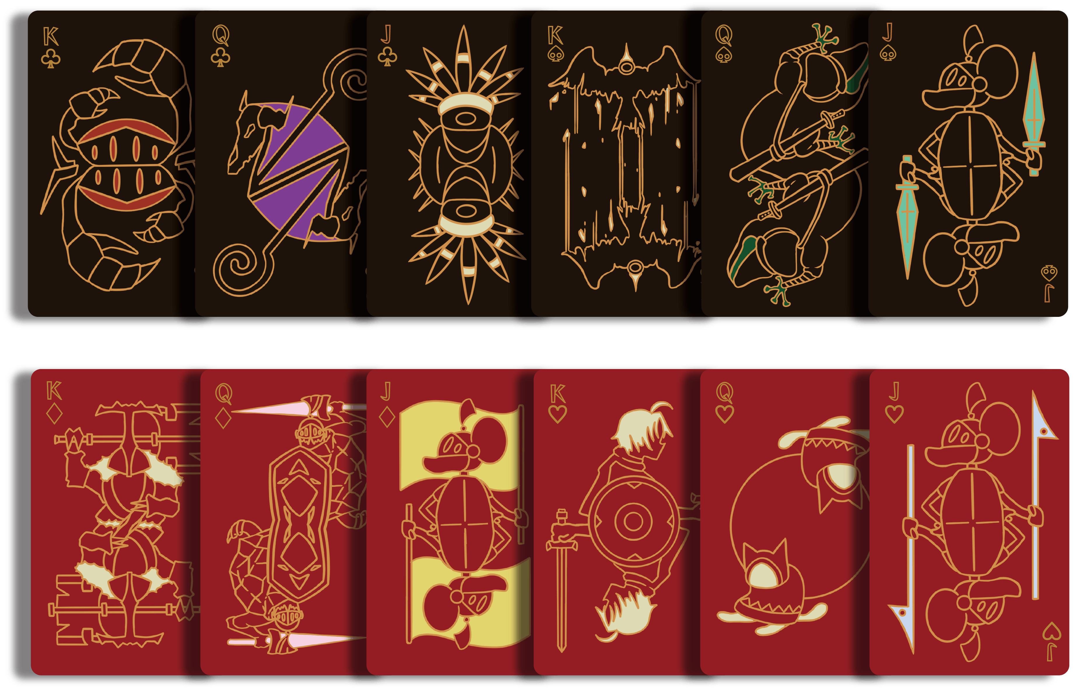 イラストは懐獣に出てくるキャラクターたち全員をグラフィカル(図形的)にして描きました。かわいいながらも懐獣の世界観を表現したトランプとなっていると思います。