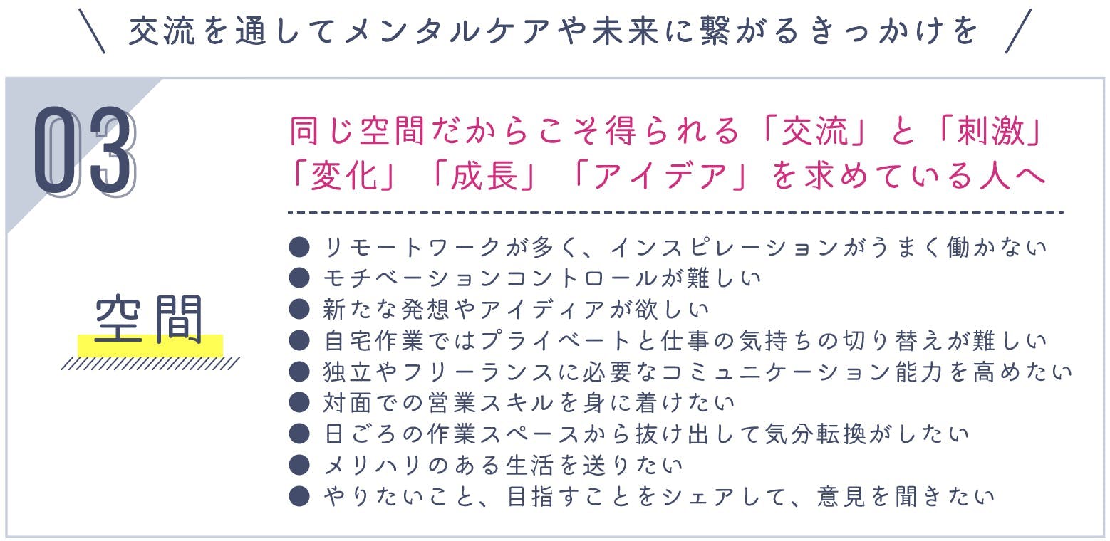 [ 未来に繋がる見えない価値の獲得]を持ち帰られるような空間を提供します。