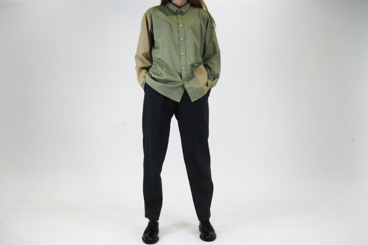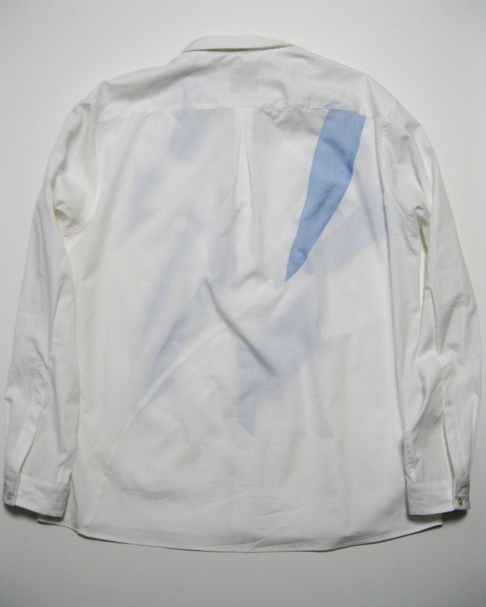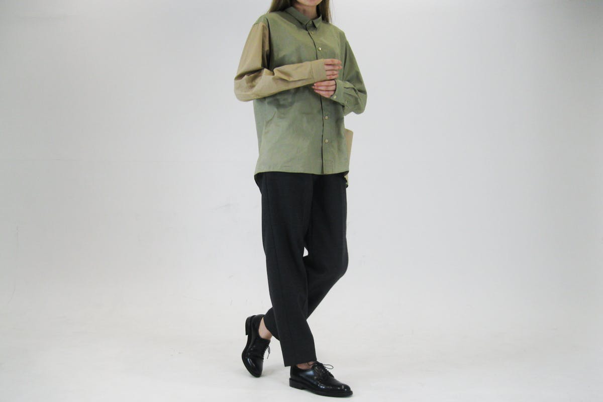 現在の活動は「シャツ」が中心になっています。このシャツは私が洋服を製作し始めたころから改善を繰り返してきた自信のあるものです。これは私が気に入ってきていた既製品のシャツ(ハイブランドや古着、ファストファッションのものなど)を何枚も解体して仕立てやシルエットなどを学び自分のシャツに落とし込んで、実際に作って自分で着て生活して確認して、これを何度も繰り返してたどり着いたものです。この作業は今でも繰り返して研究を続けています。