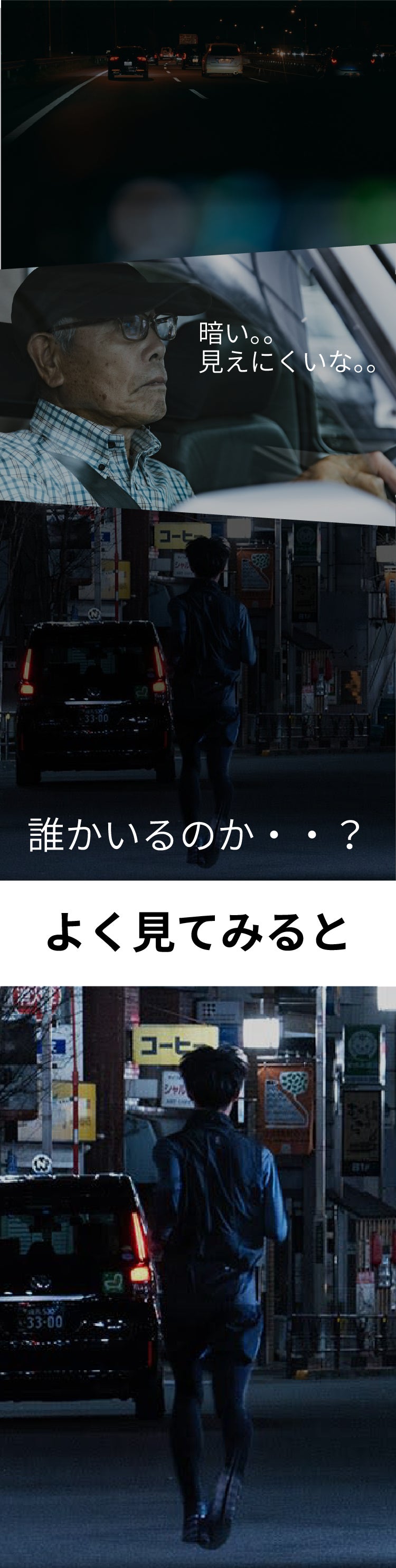 悪視界での運転中に突然出てくる人、モノ、動物に「ヒヤッ」、「ハッ」としたことありませんか?