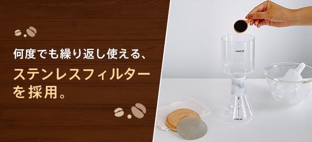 低温で時間をかけてじっくり豆の成分を抽出することで、雑味や苦味がほとんどないクリアな極上コーヒーが誰でも簡単に作れます。