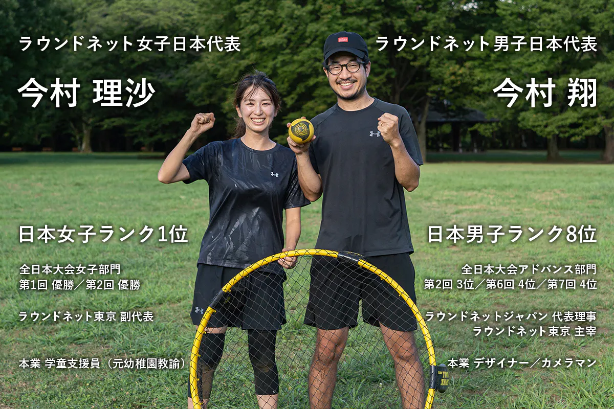 私たちは、2022年9月にベルギーで初開催されるラウンドネット世界大会(出場国33カ国)に出場する夫婦です。普段は2人とも本業をやりつつ、休日はアスリートとしてラウンドネットの普及活動をしています。