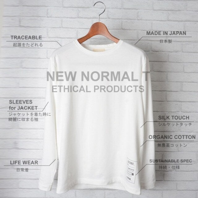 サスティナブルの観点から無農薬栽培されたオーガニックコットンを使用し、紡績、生産まですべて日本で行い、クリーンなモノ創りを念頭に置き作り上げた1枚。